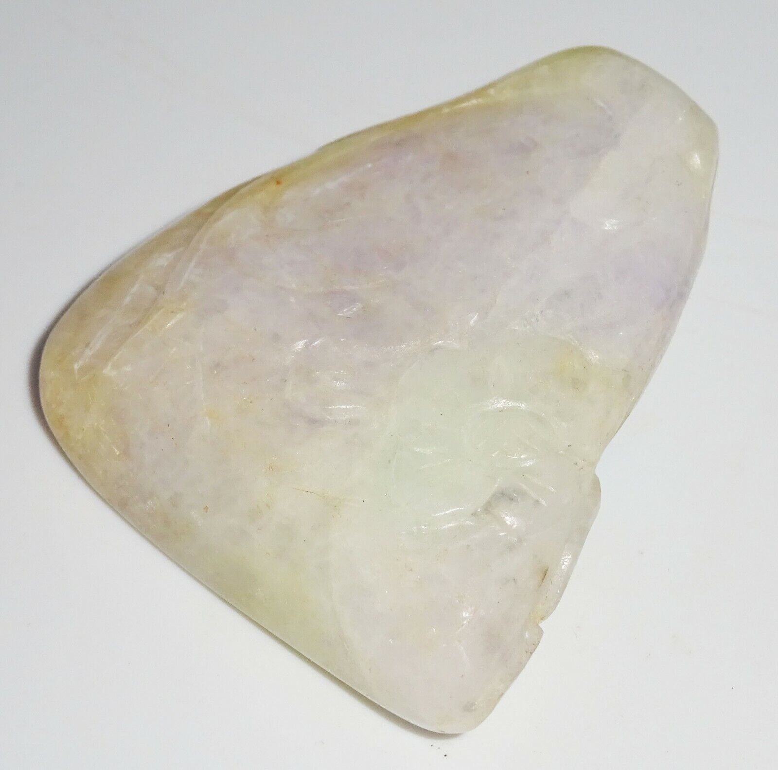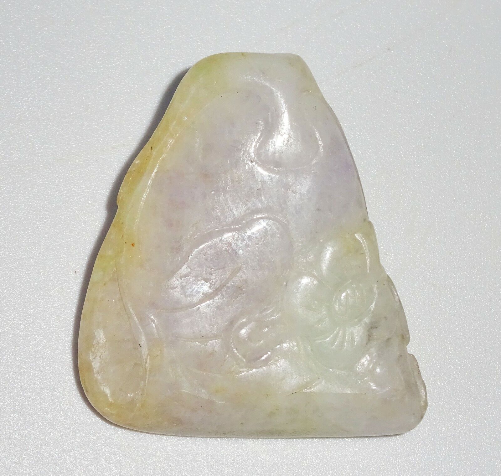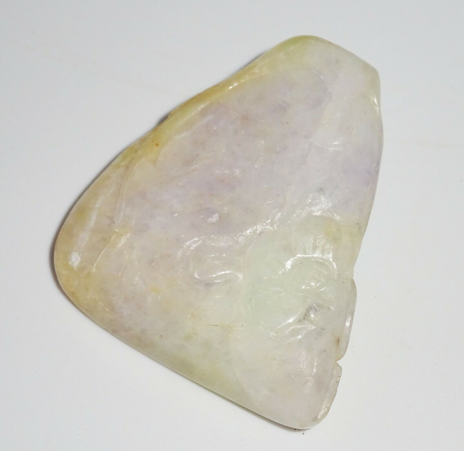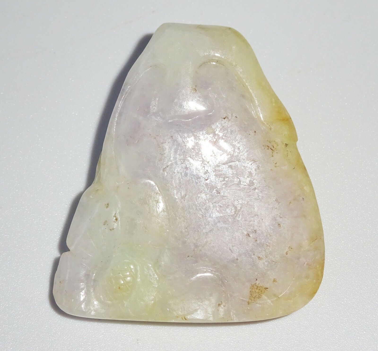 Vintage Chinese Lavender Jade Rock w. Flower Motif Carving (FeO) #43b