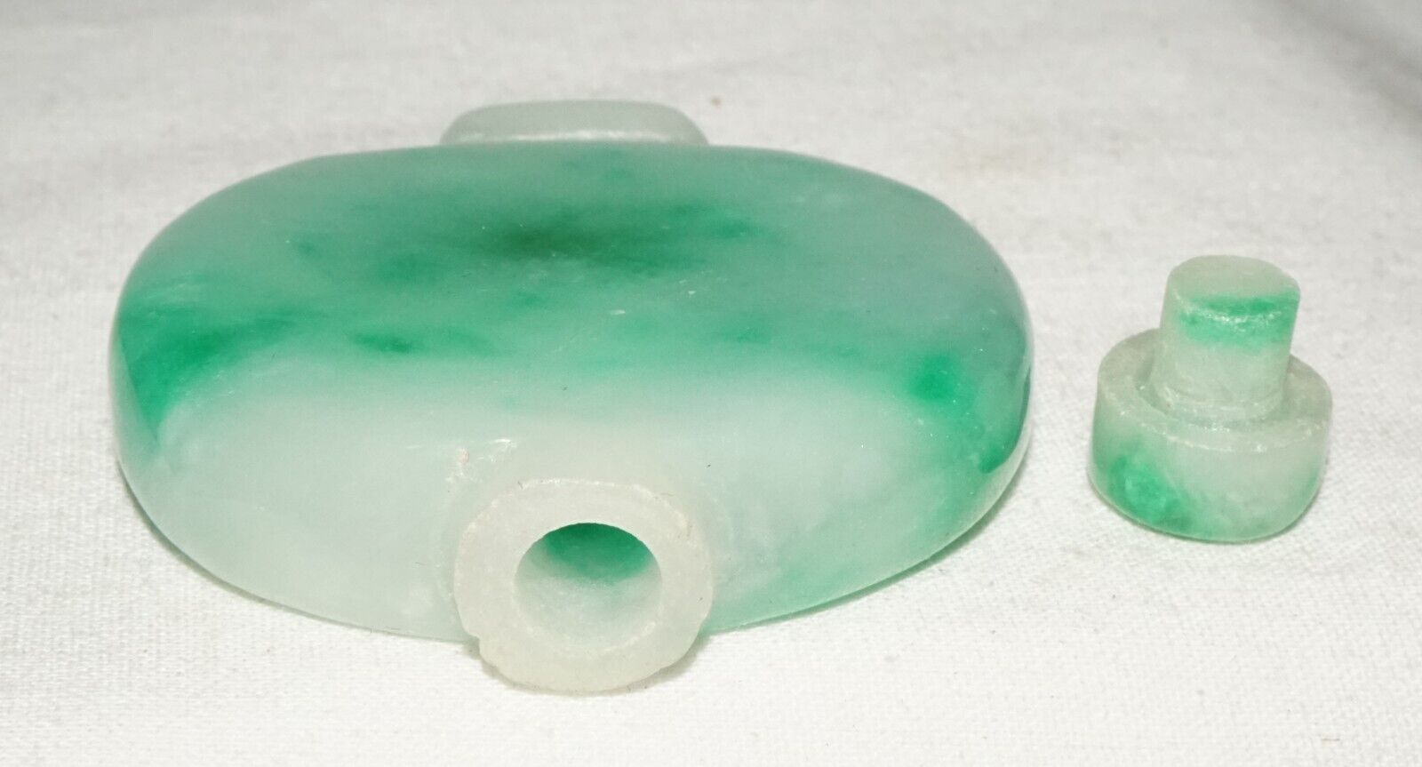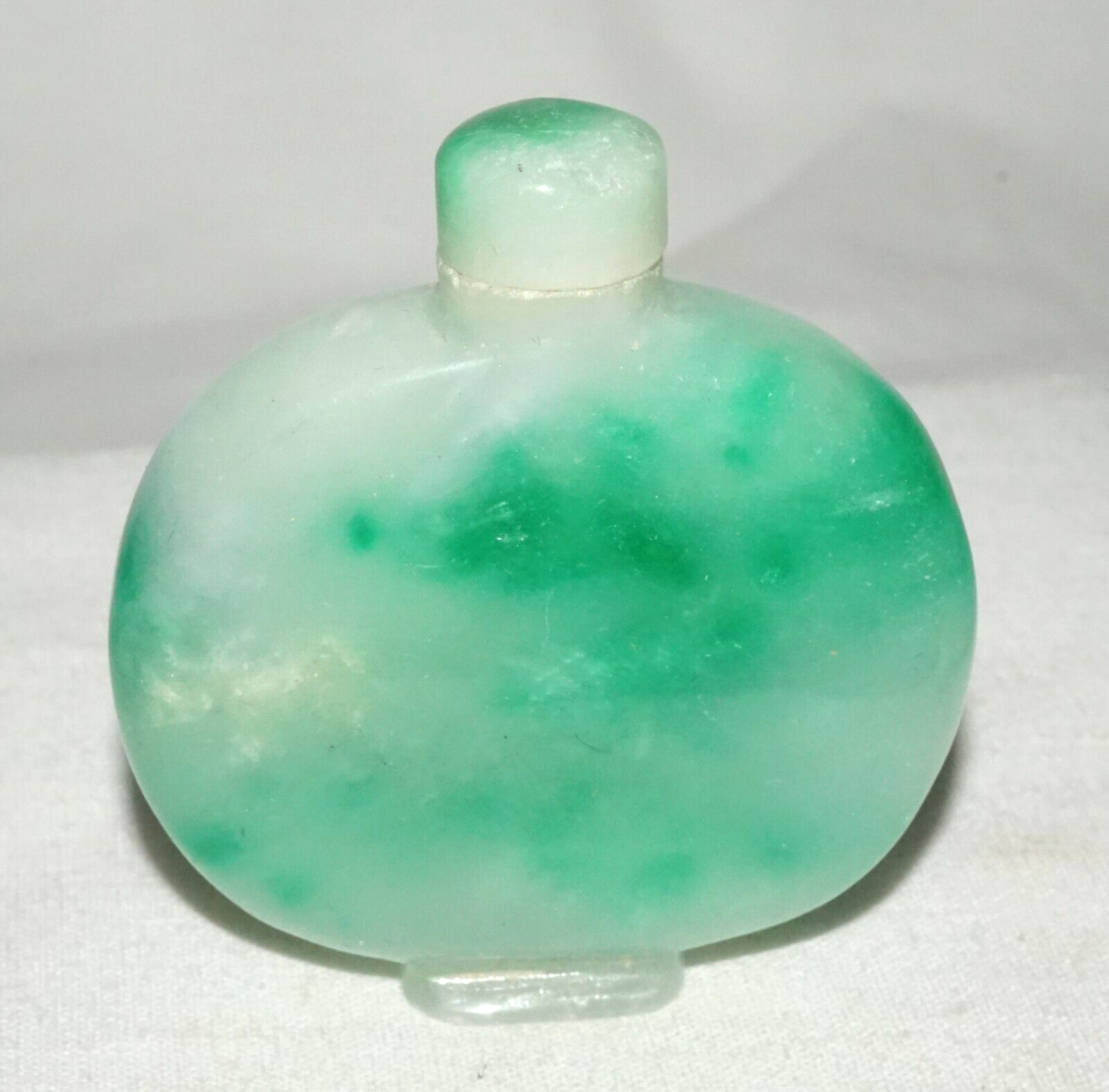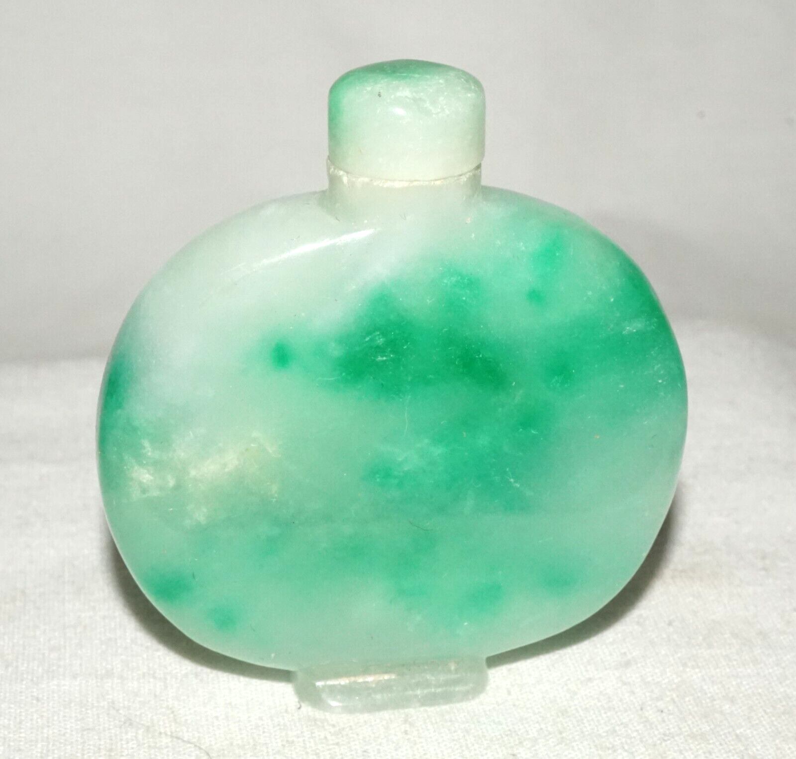 Vintage Chinese Mottle Apple Green Jadeite Jade Snuff Bottle & Stopper (LeS)