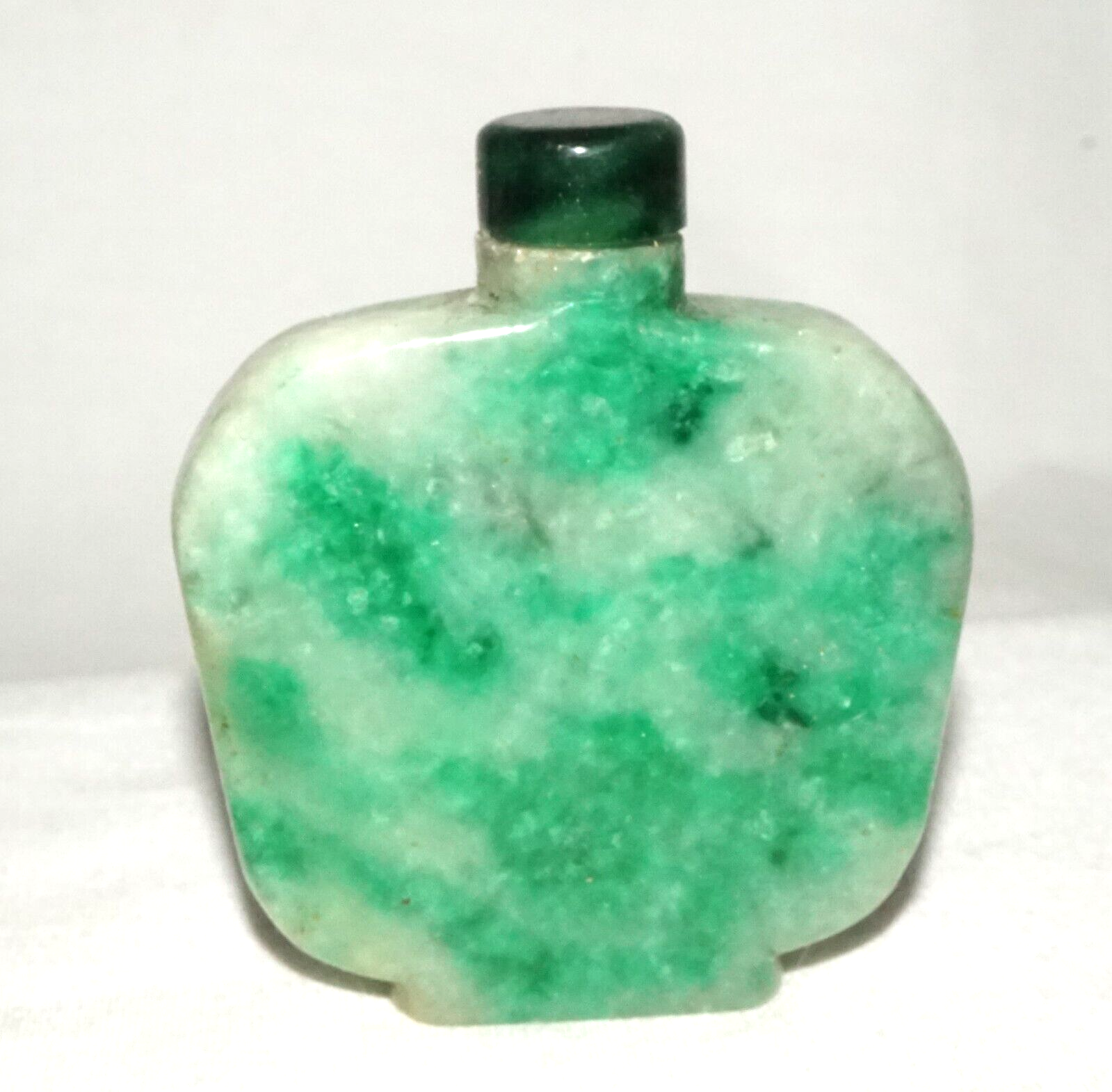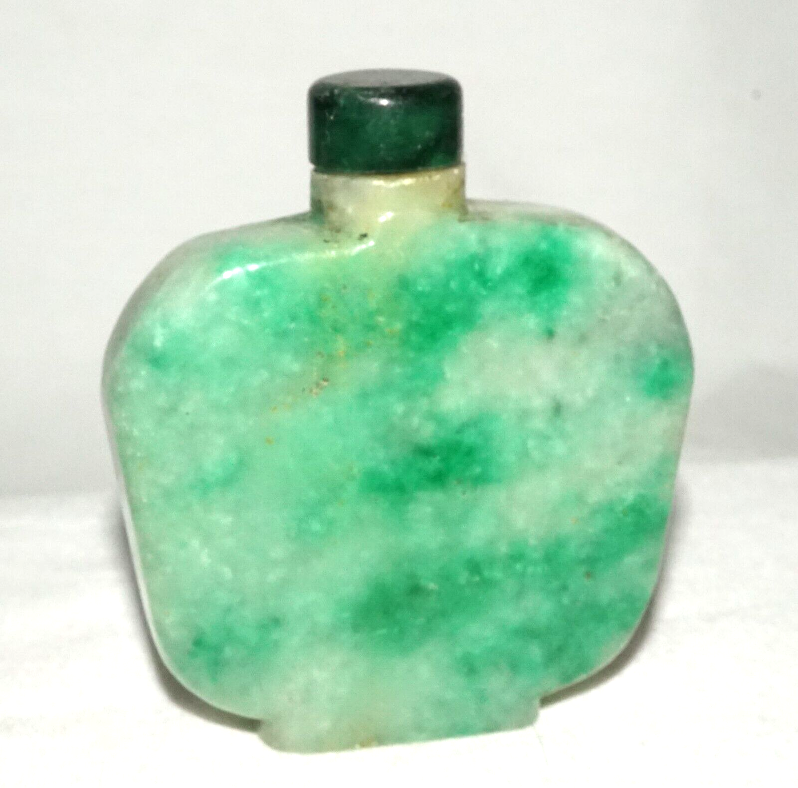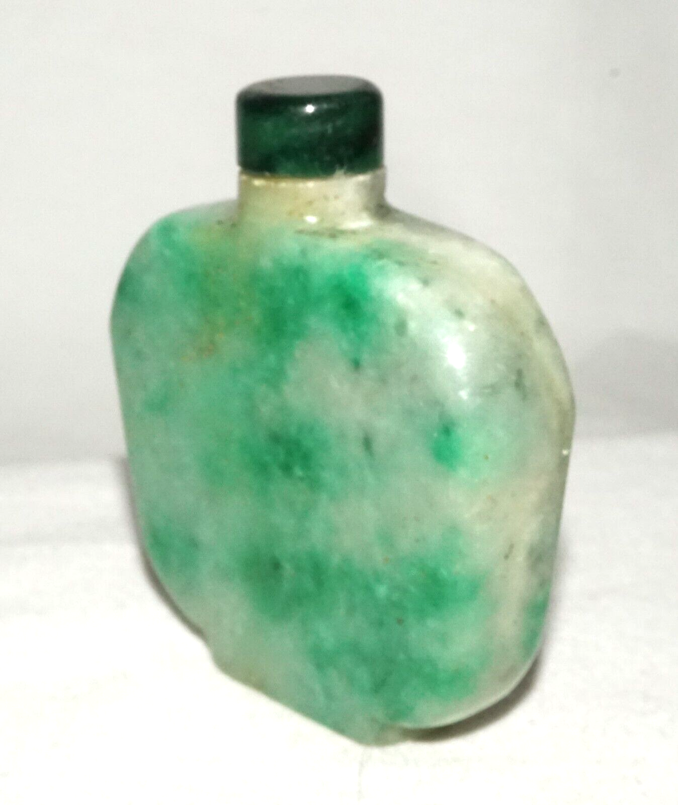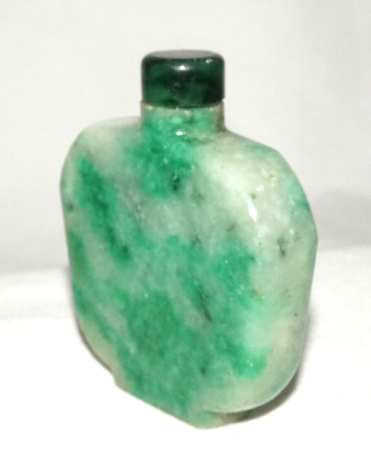 Vintage Chinese Mottle Apple Green Jadeite Jade Snuff Bottle & Stopper (LeS)