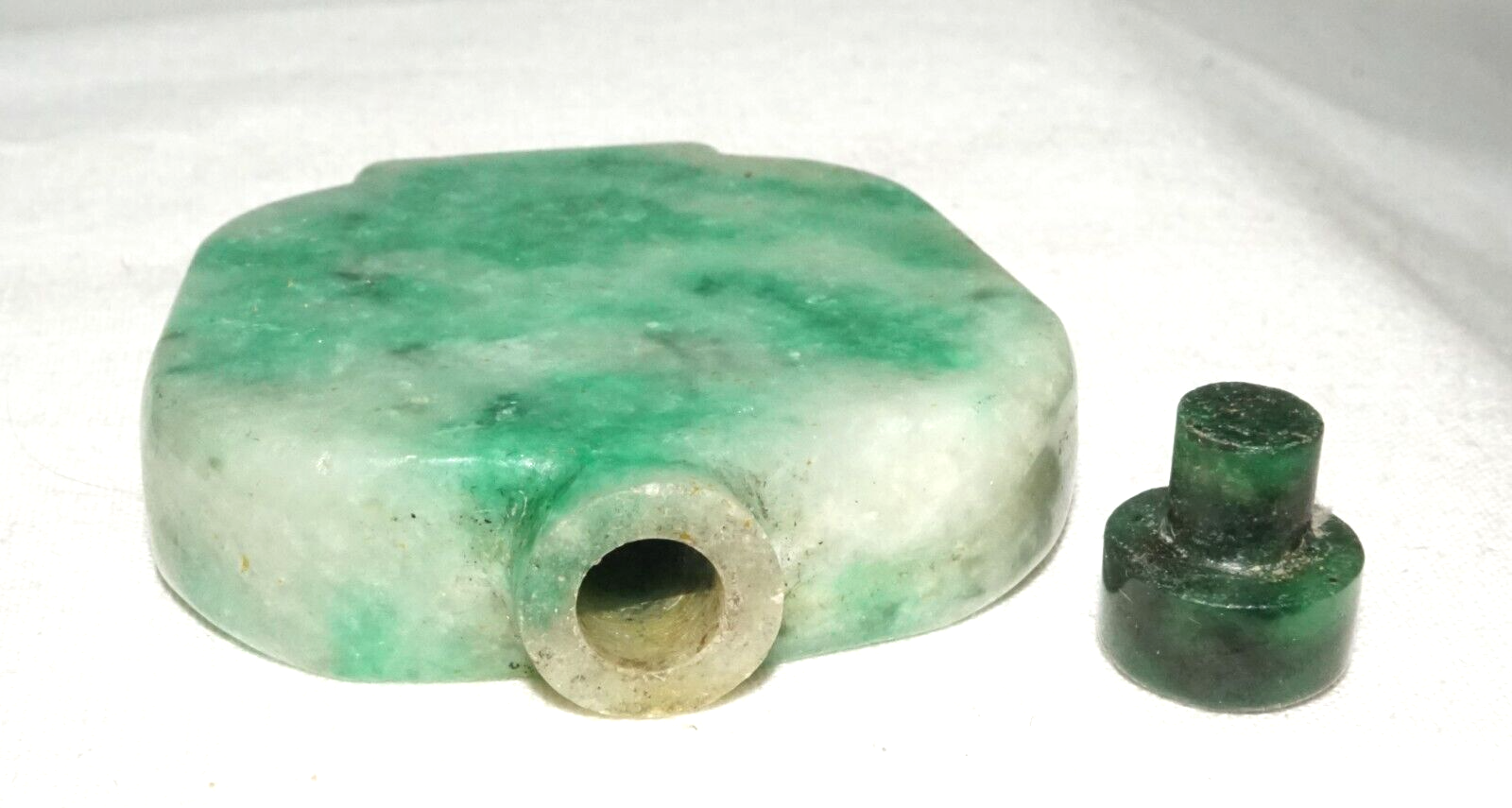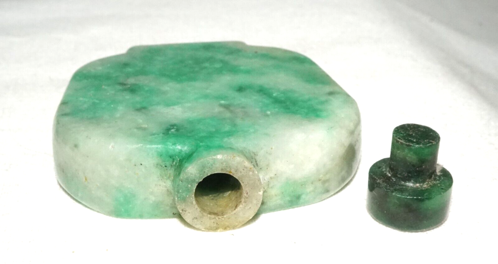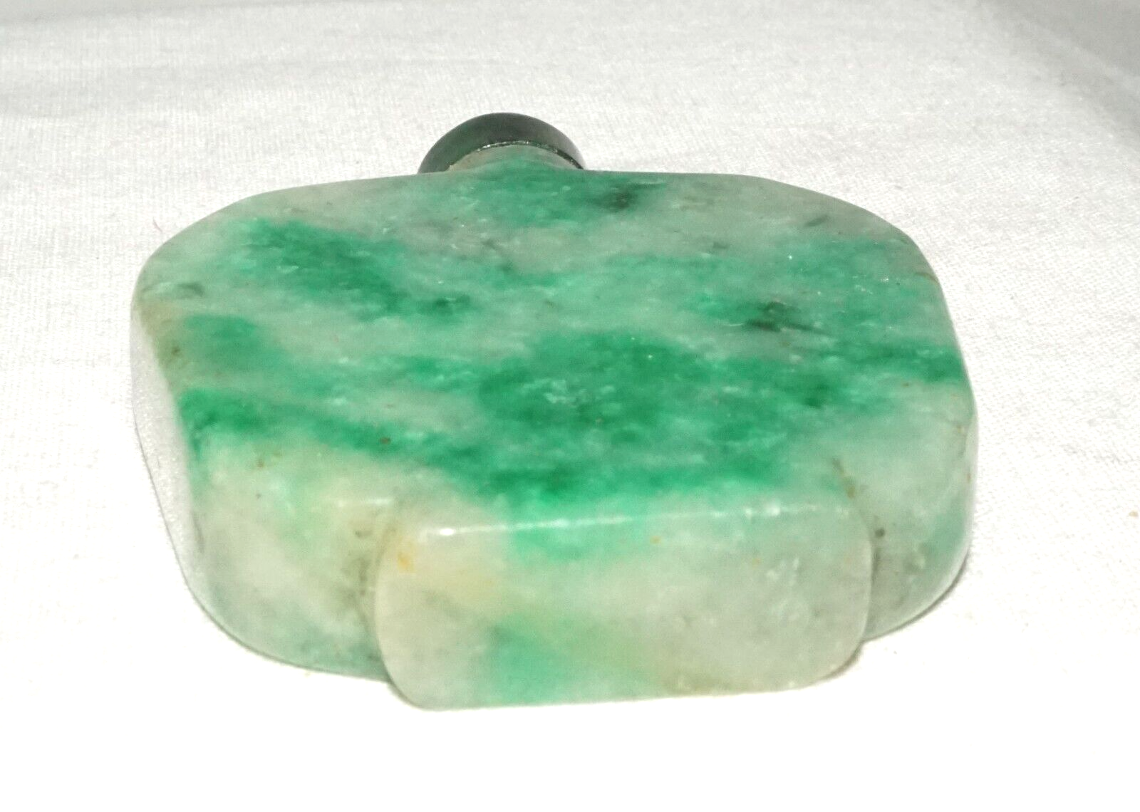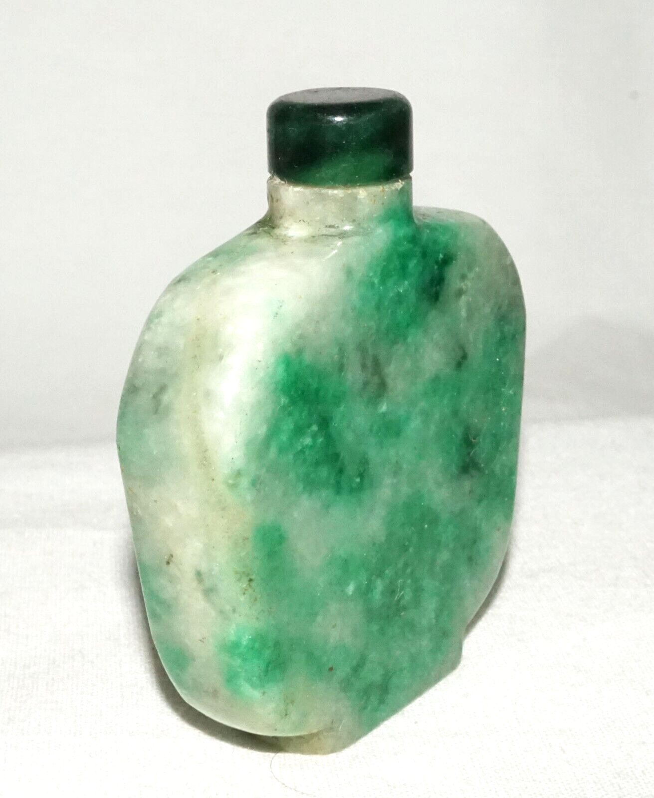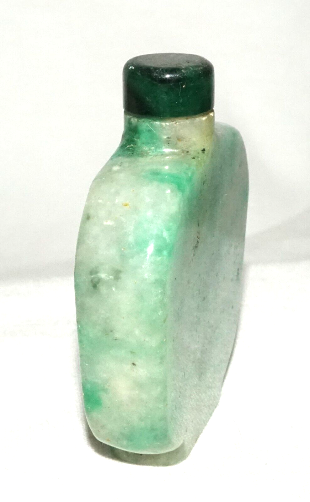 Vintage Chinese Mottle Apple Green Jadeite Jade Snuff Bottle & Stopper (LeS)