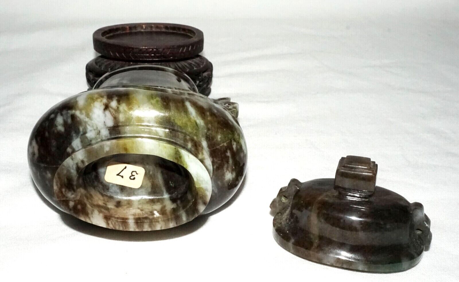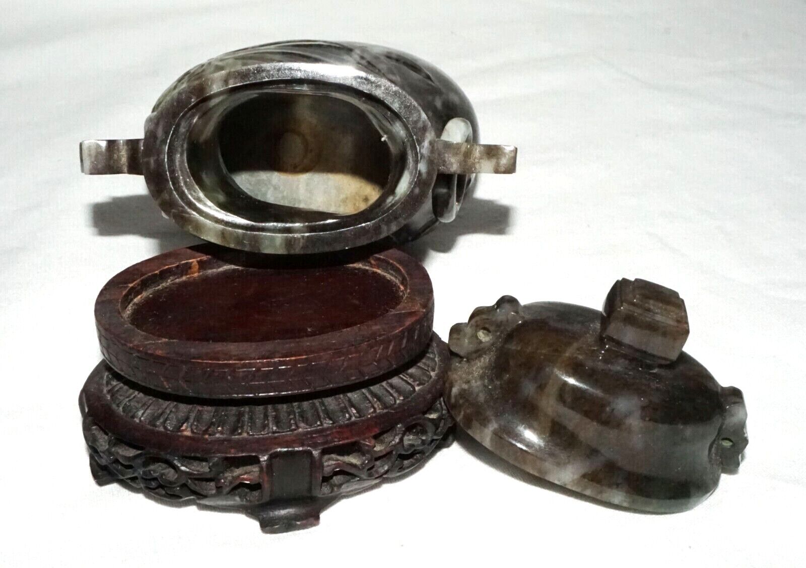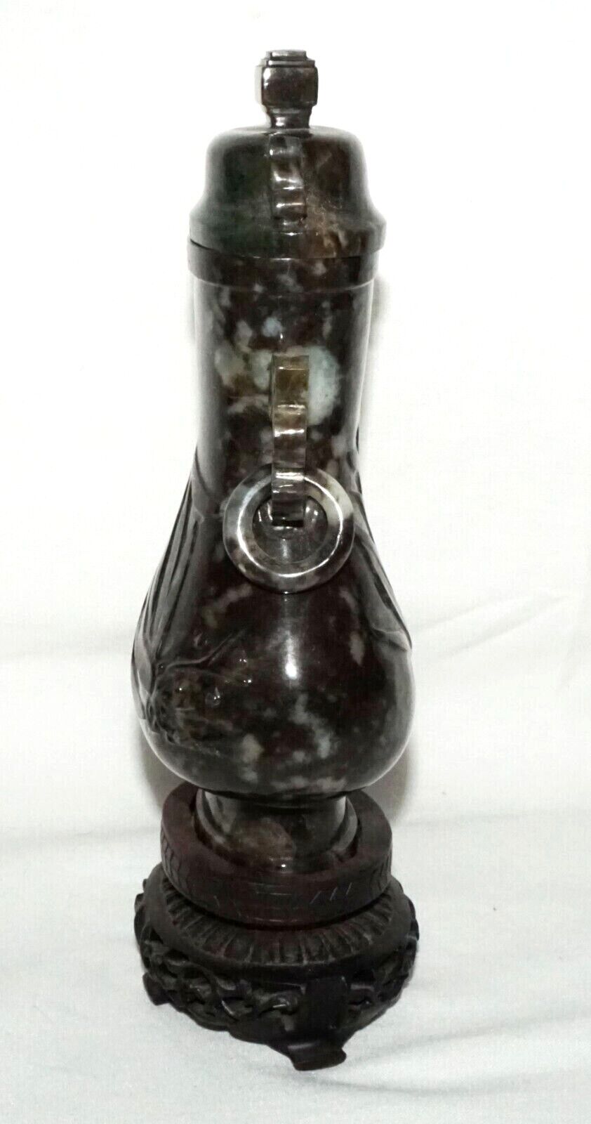 Vintage Chinese Mottled Black Jadeite Jade Baluster Covered Vase on Stand (LeD)