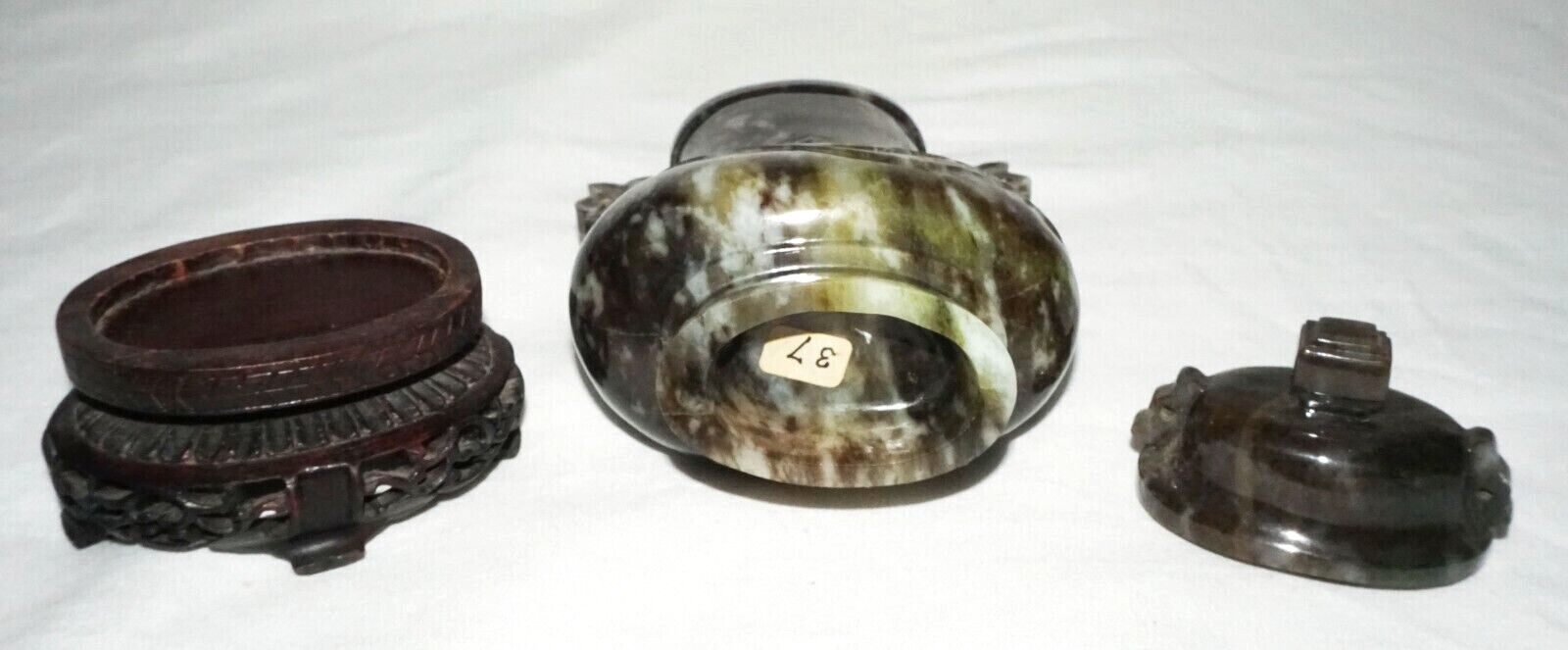 Jade Vase (no base) 5 ¾ inches high x 3 ⅛ inches wide x combined weight (including bases) 15oz.