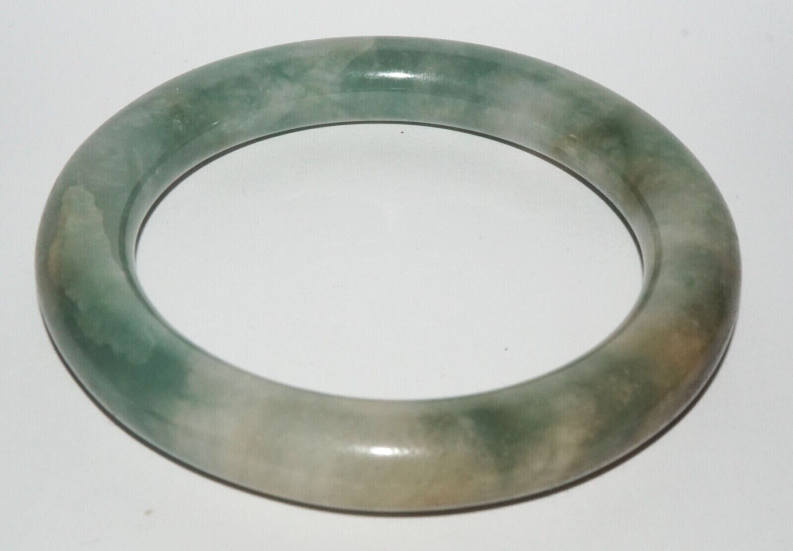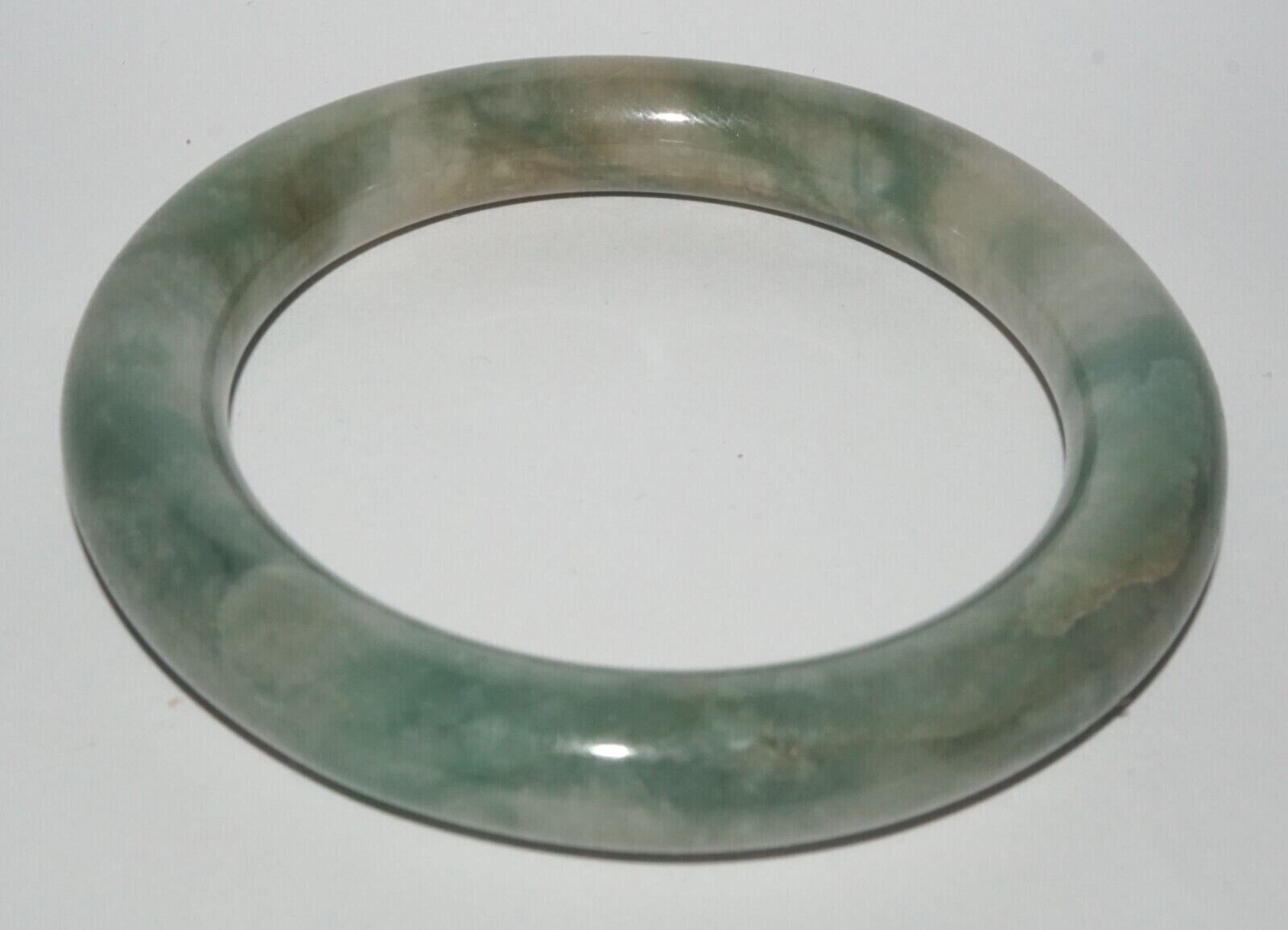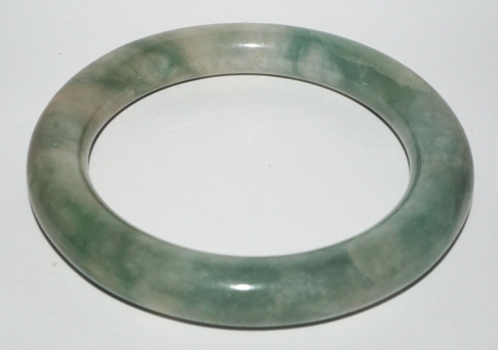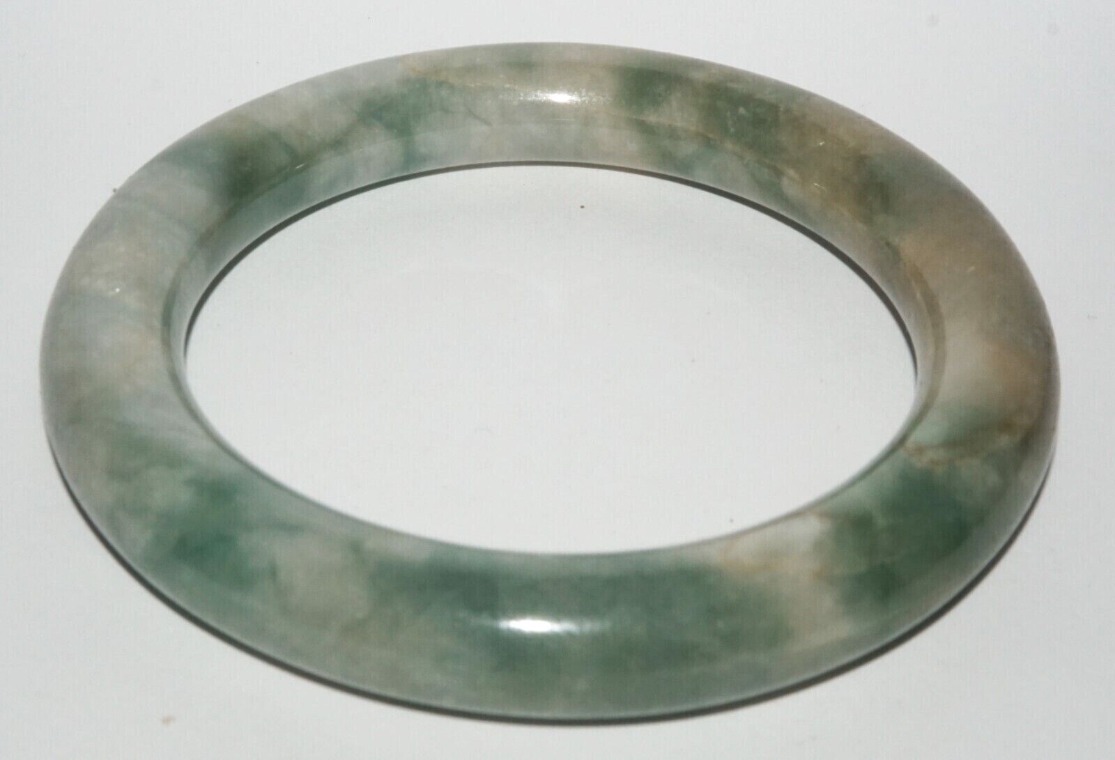 Vintage Chinese Mottled Green Jadeite Jade Bangle Bracelet (LeS) B6
