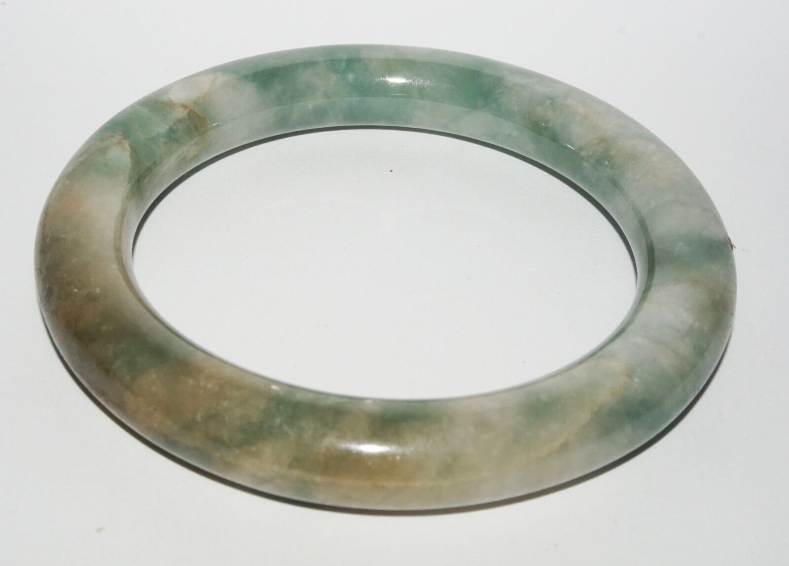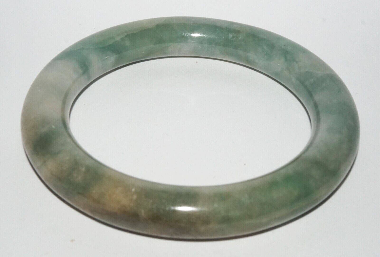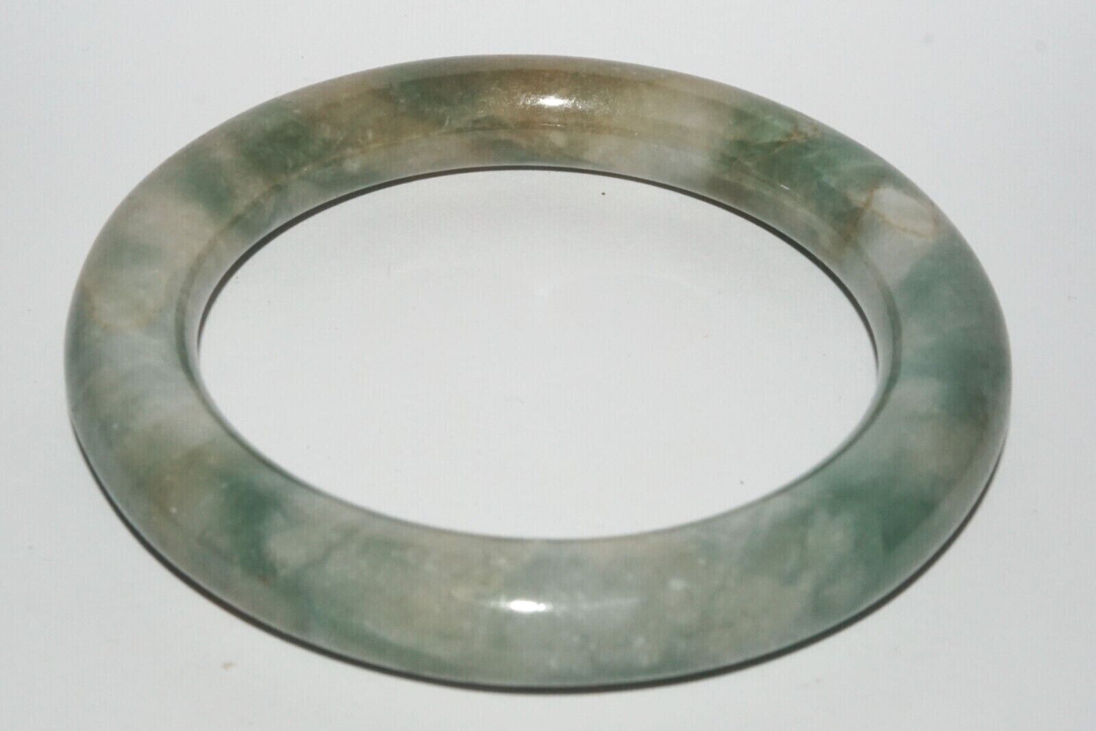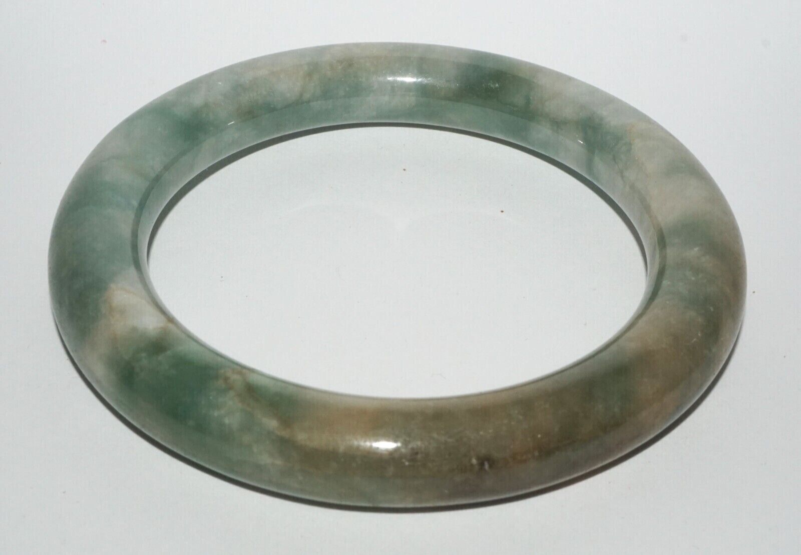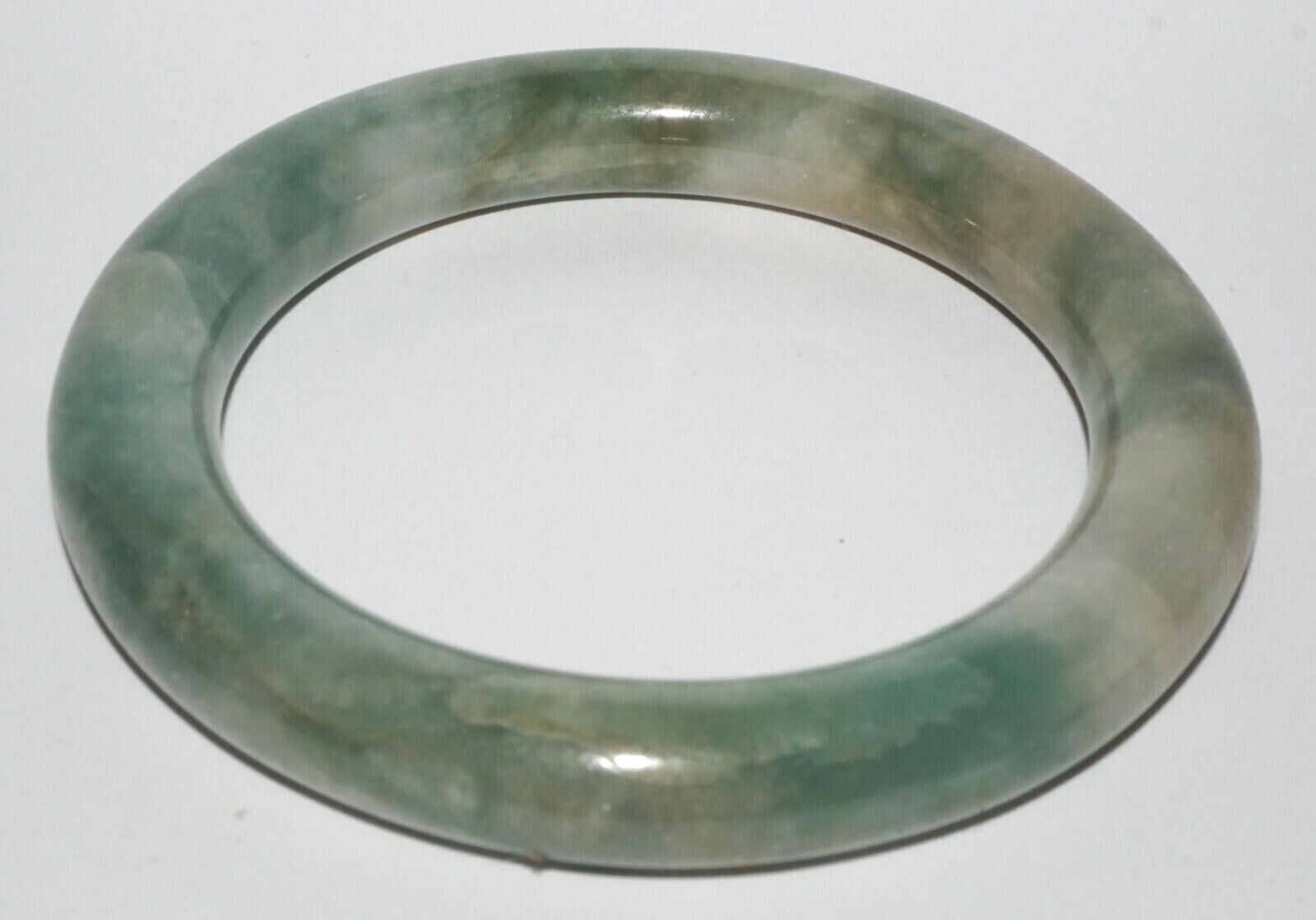 Vintage Chinese Mottled Green Jadeite Jade Bangle Bracelet (LeS) B6