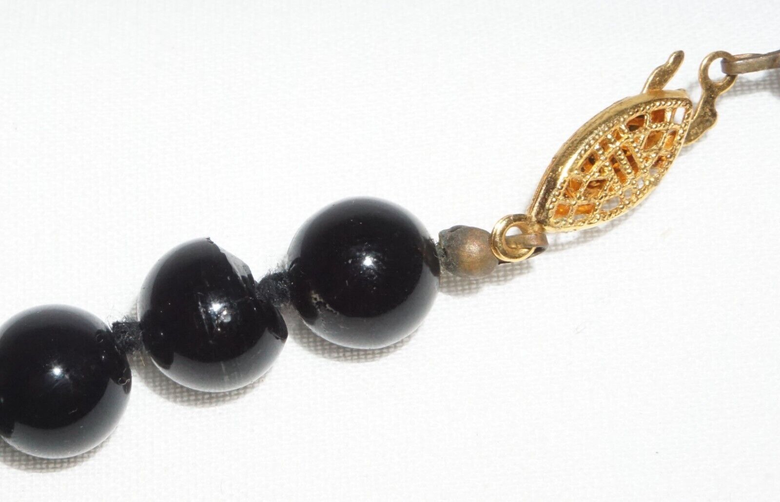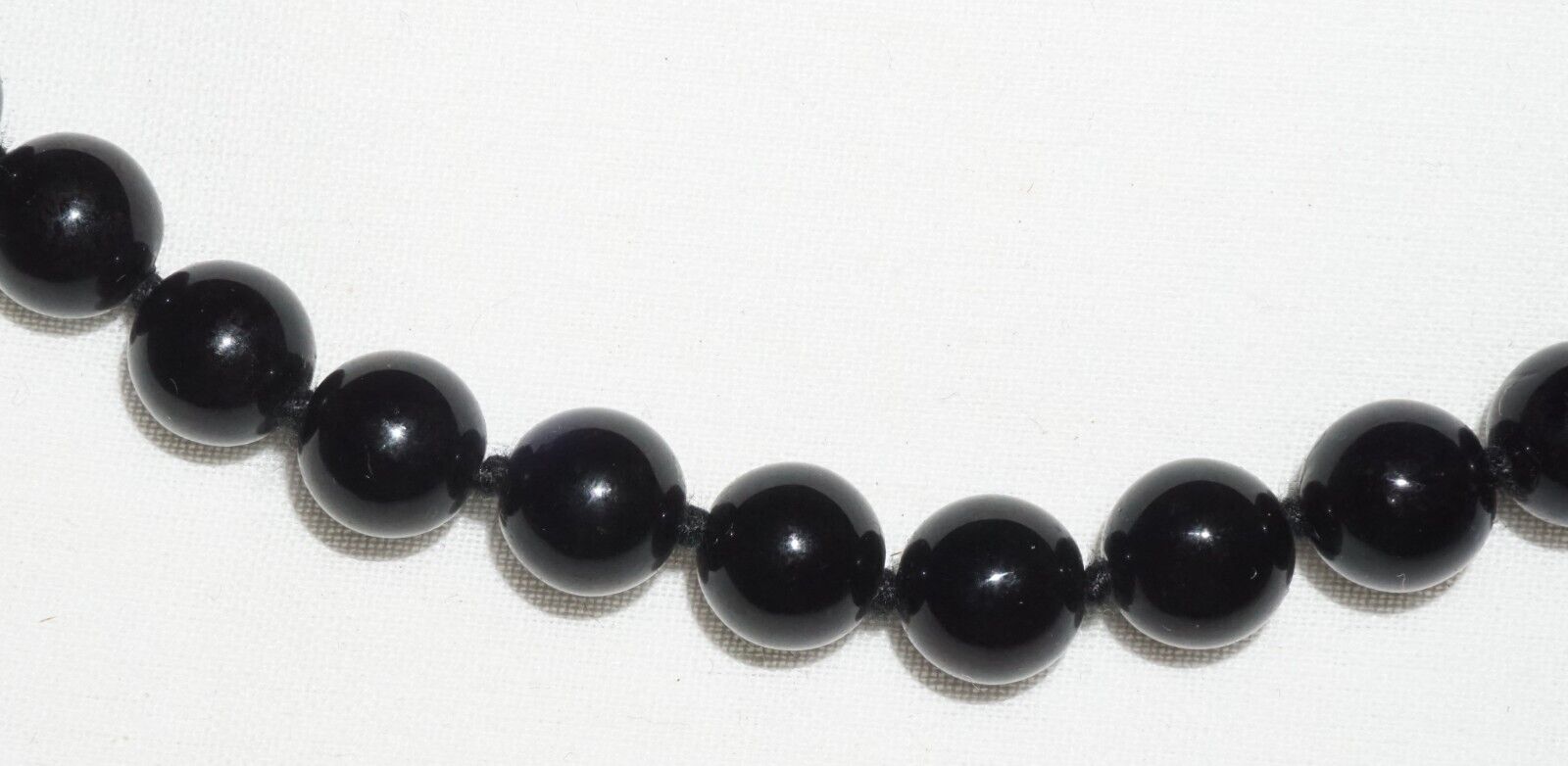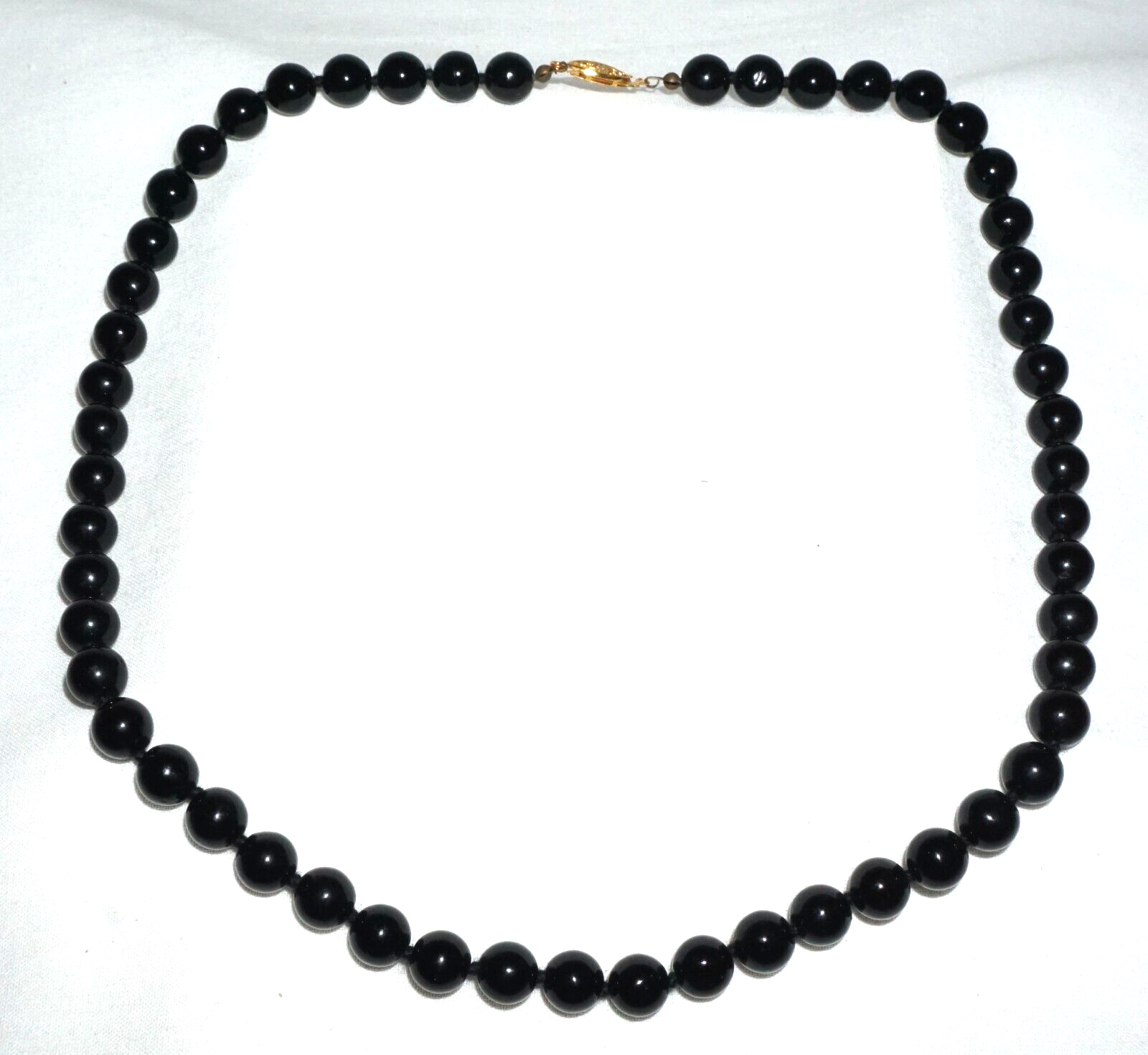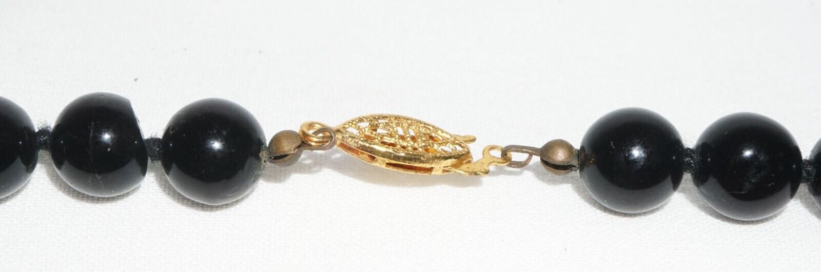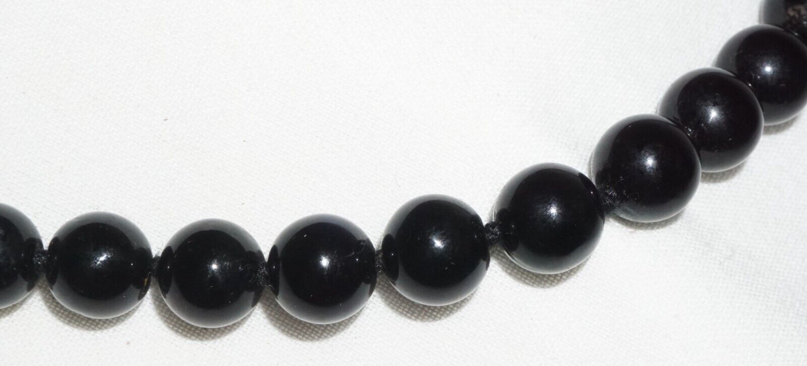 Up for sale from a recent estate in Honolulu Hawaii, this Vintage Chinese single strand black onyx bead (beads approx. 10mm in diameter) necklace. The condition is described above for more information please check the photos.