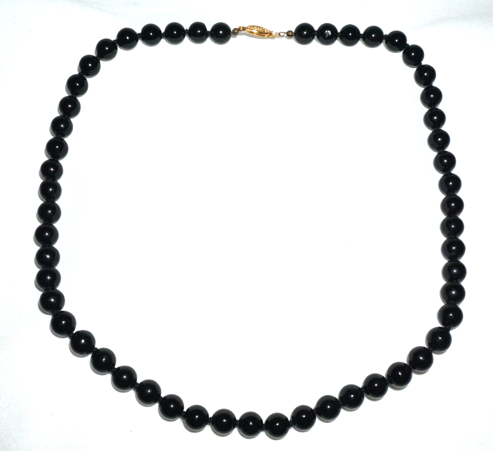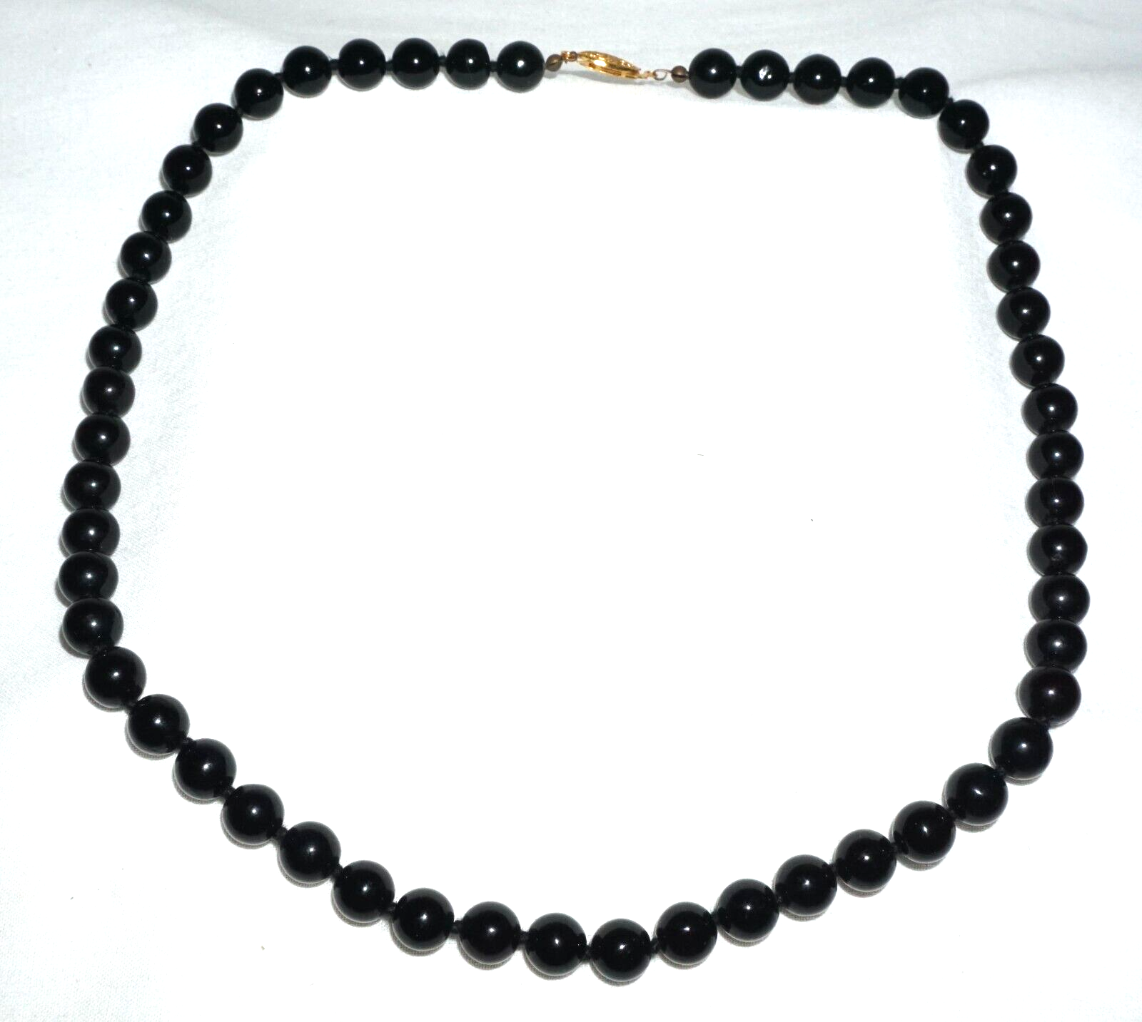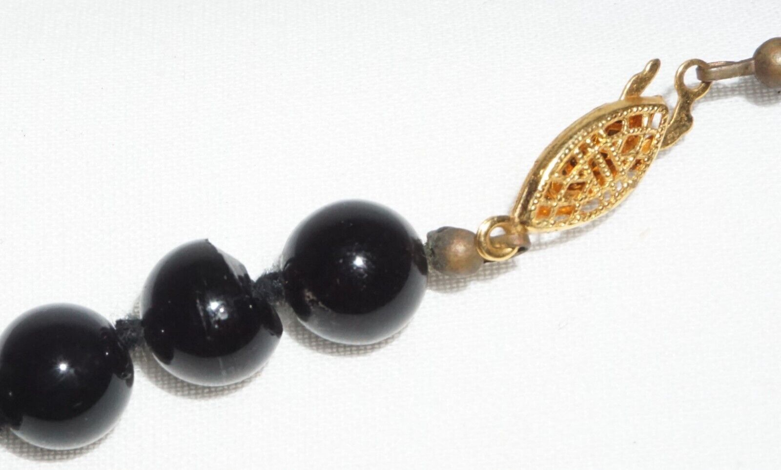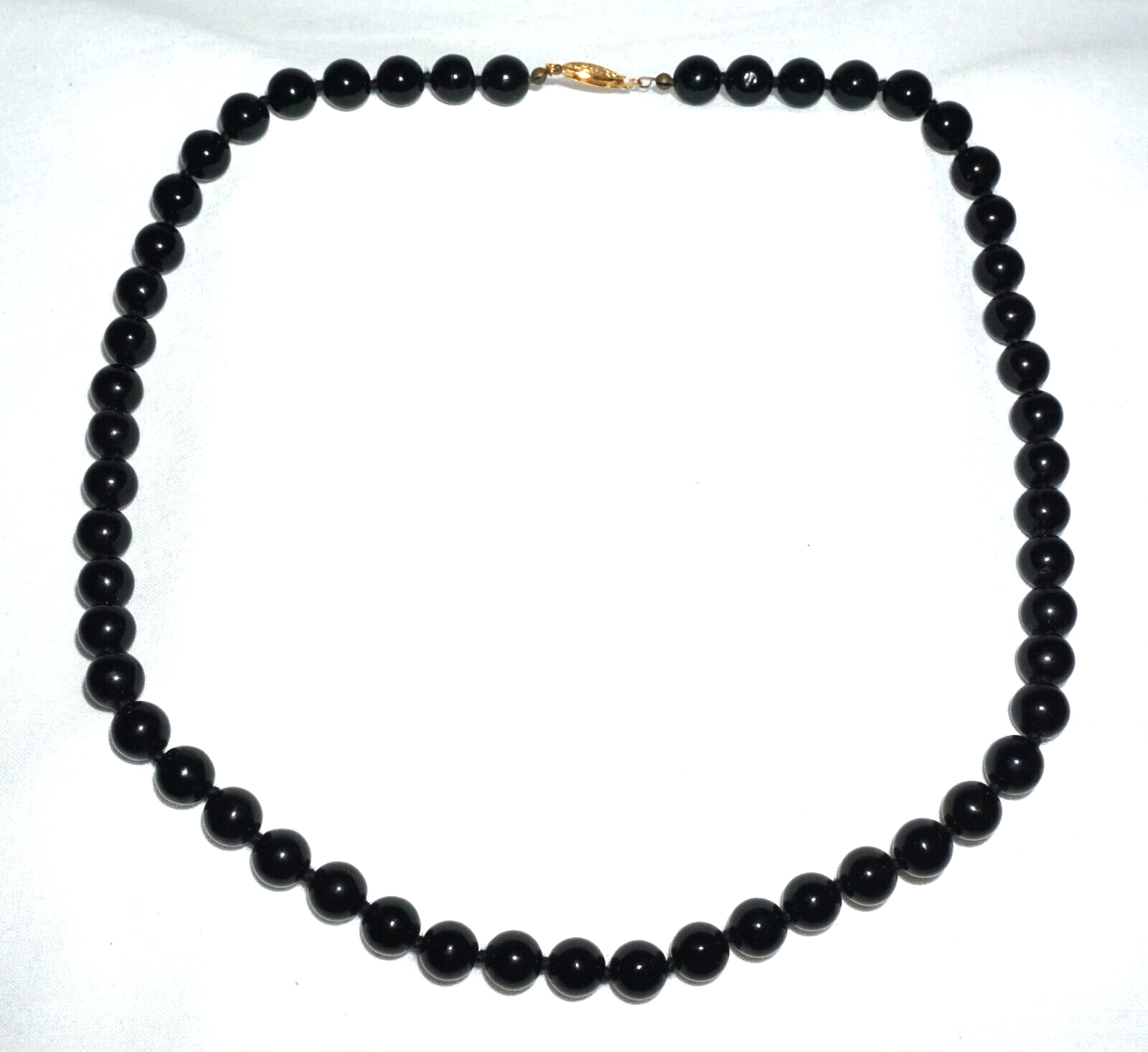 Up for sale from a recent estate in Honolulu Hawaii, this Vintage Chinese single strand black onyx bead (beads approx. 10mm in diameter) necklace. The condition is described above for more information please check the photos.