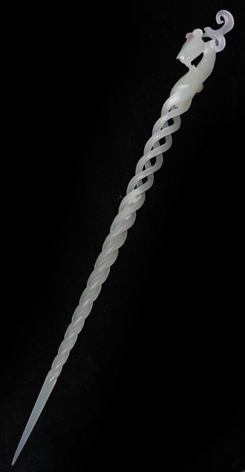 Vintage Chinese Pierced Spiral White Jade Hairpin Extremely Fine Carved (AHB)