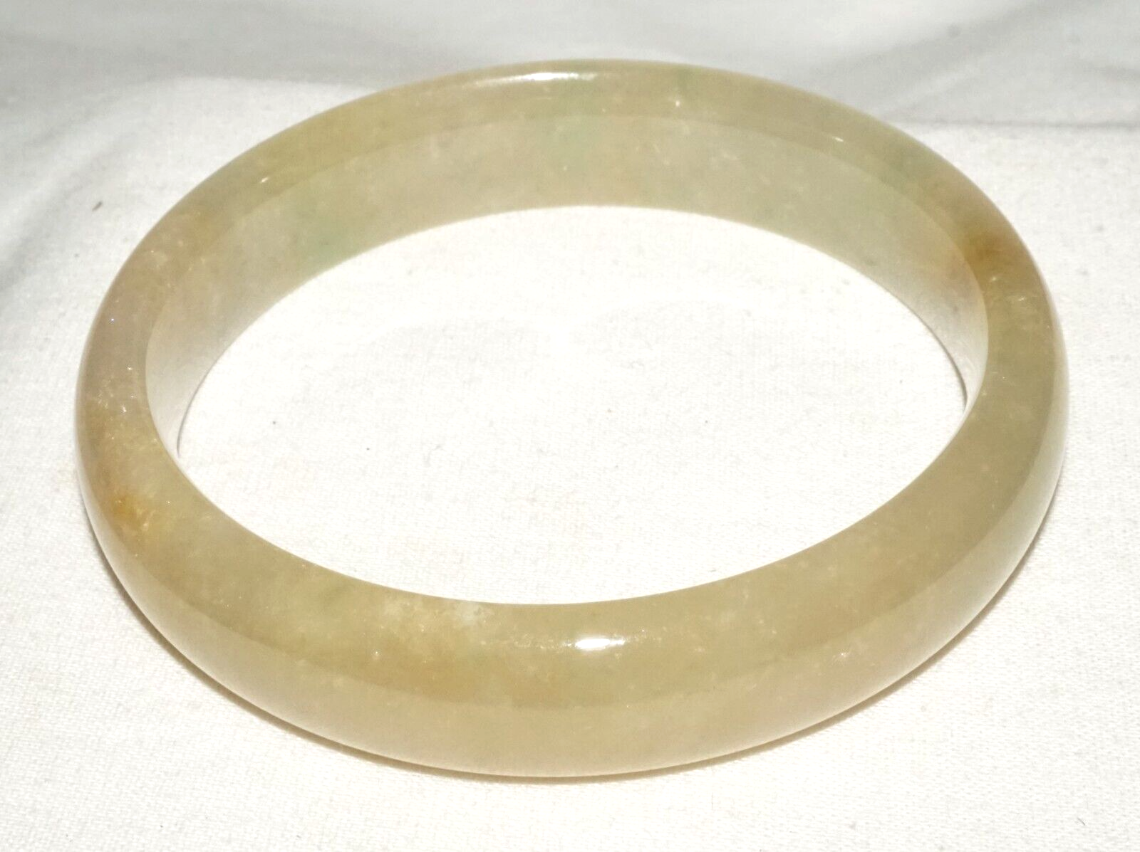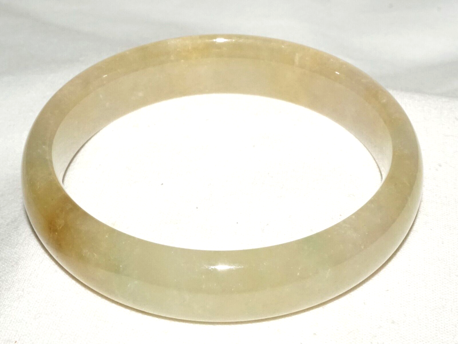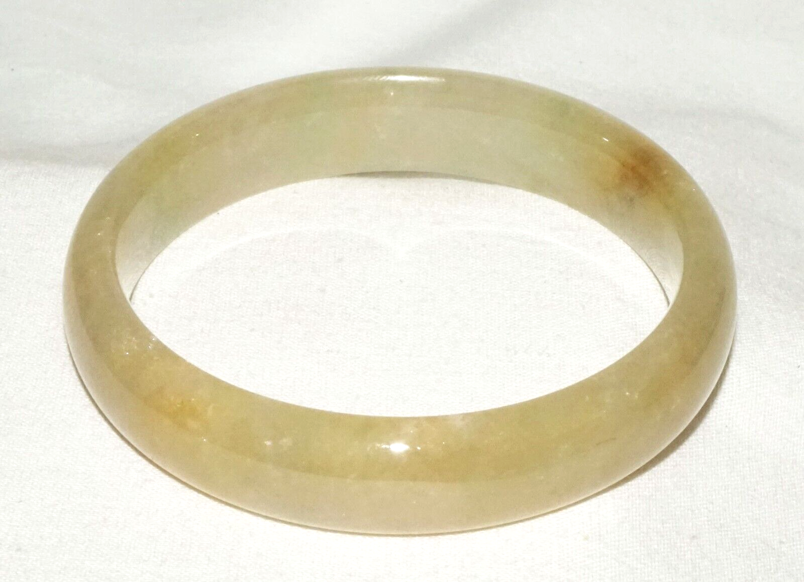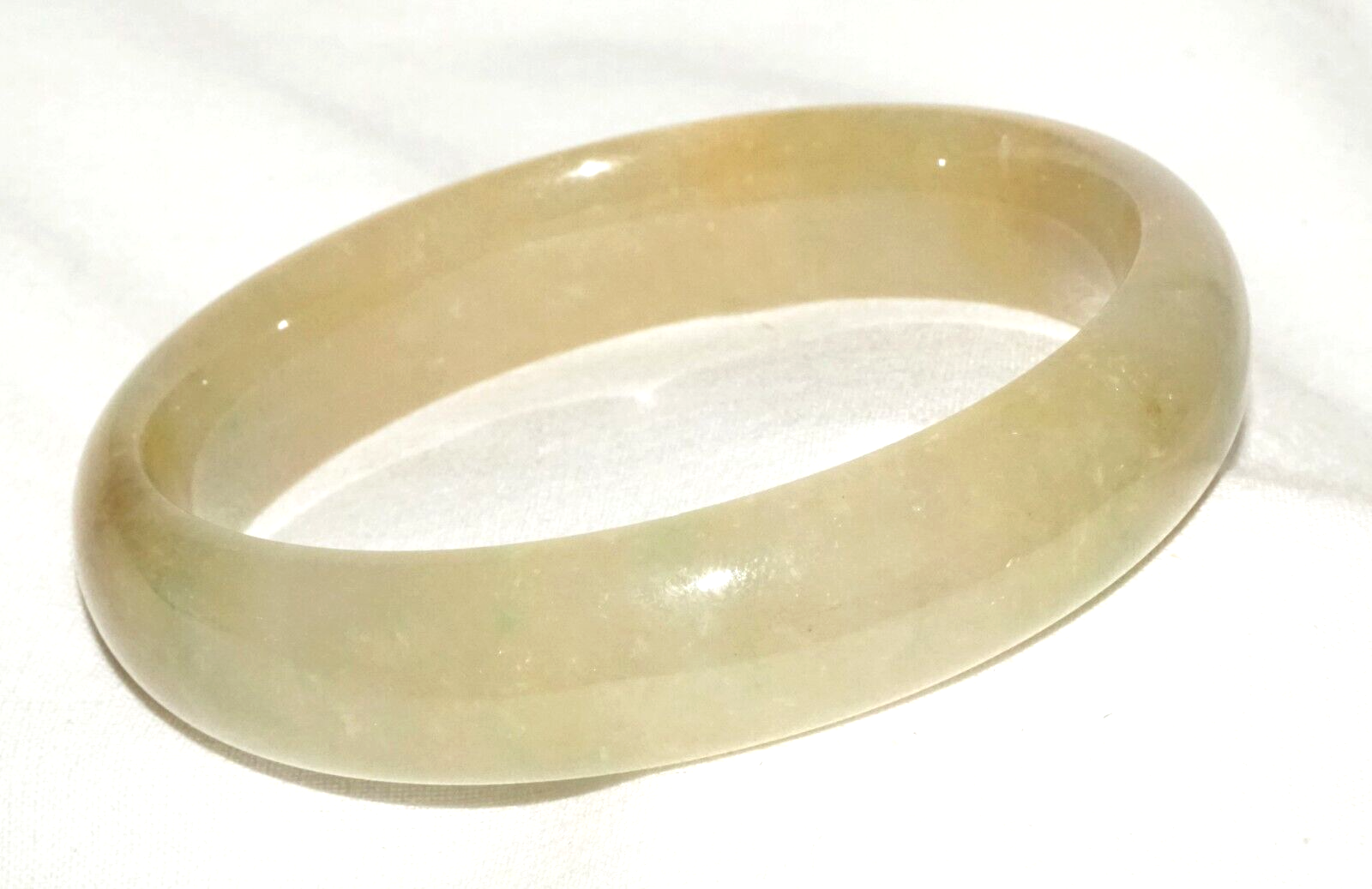 Vintage Chinese Semi Translucent Yellowish Green Jade Bangle Bracelet (InS)#L3