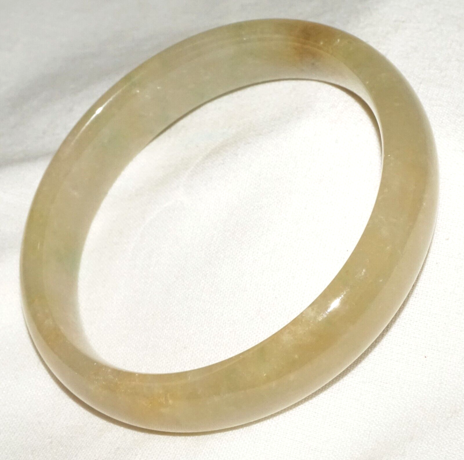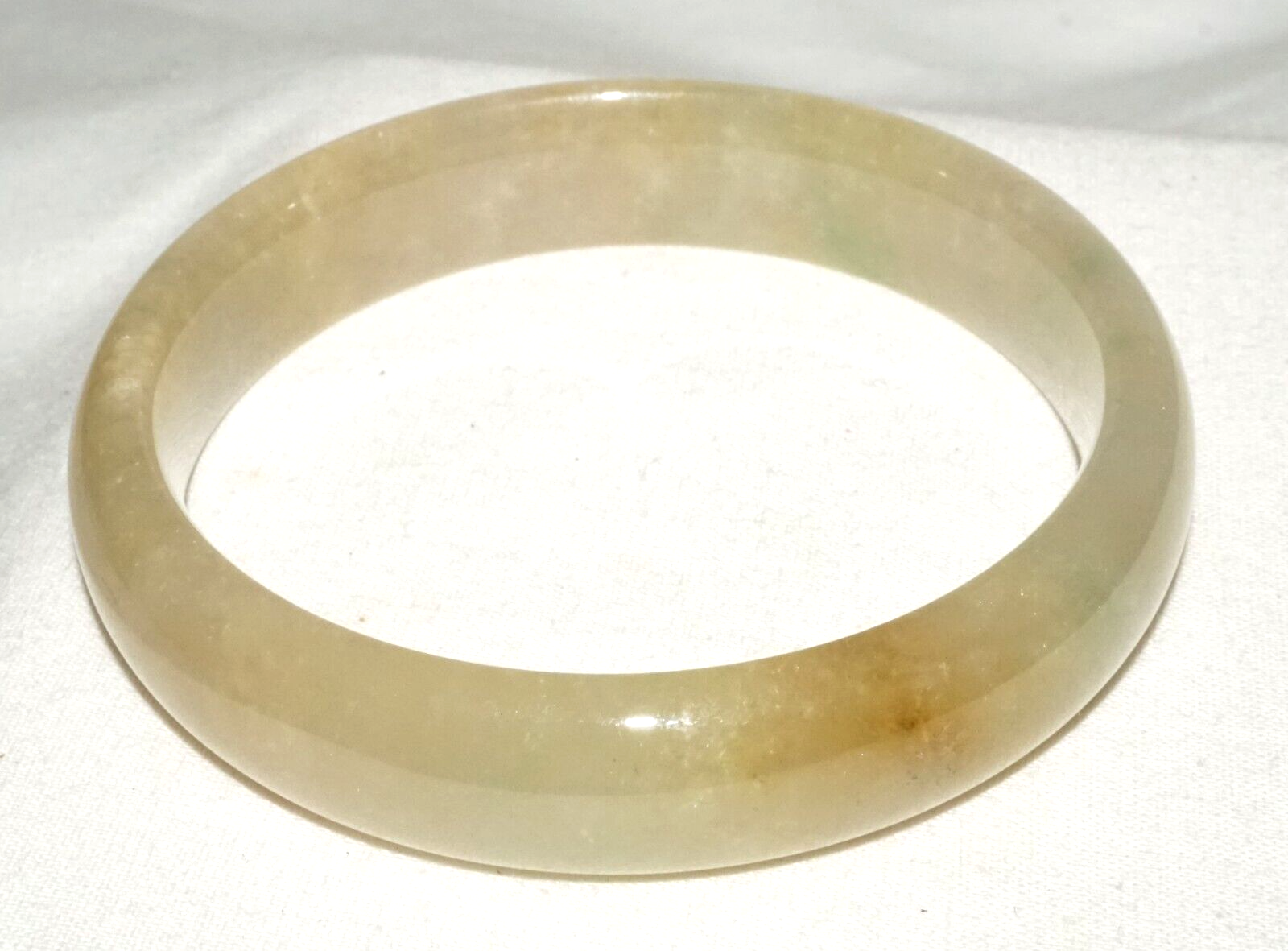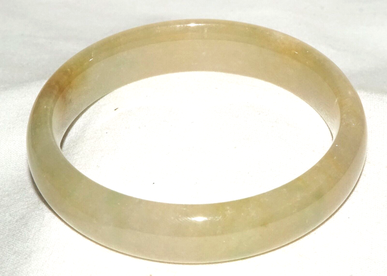 Vintage Chinese Semi Translucent Yellowish Green Jade Bangle Bracelet (InS)#L3