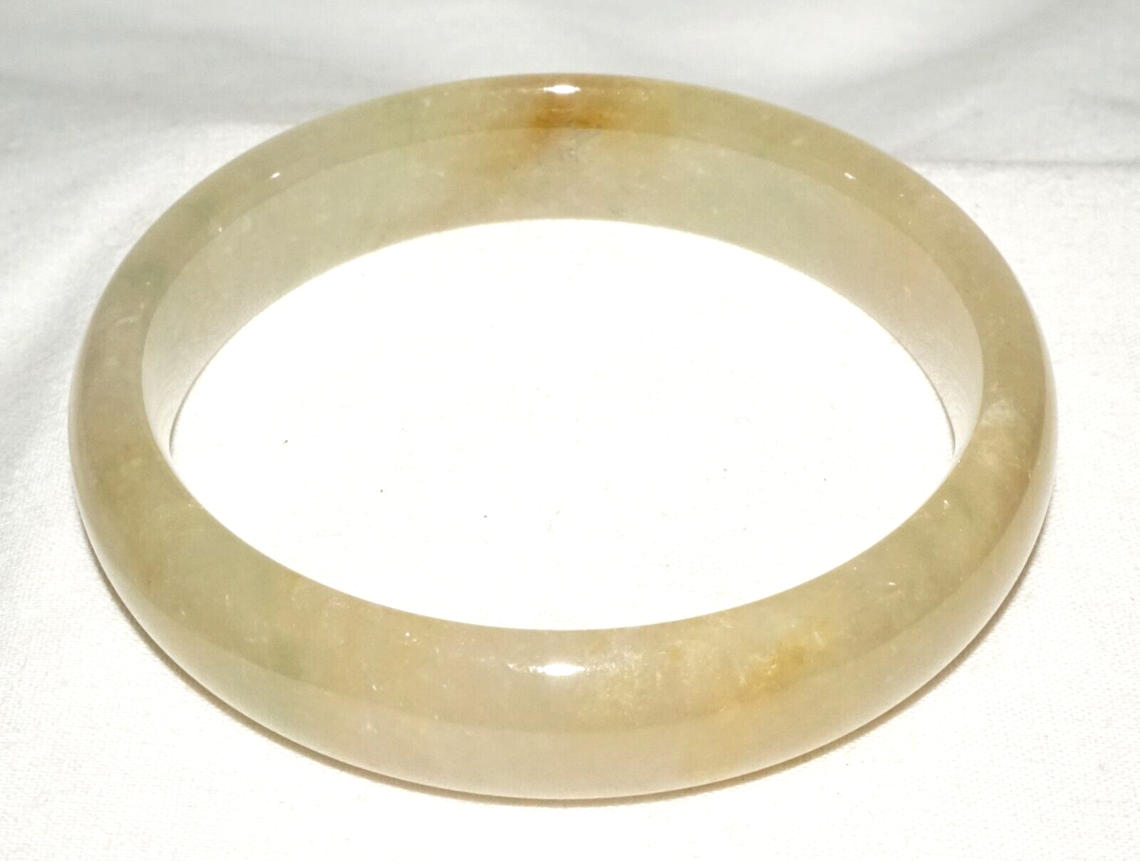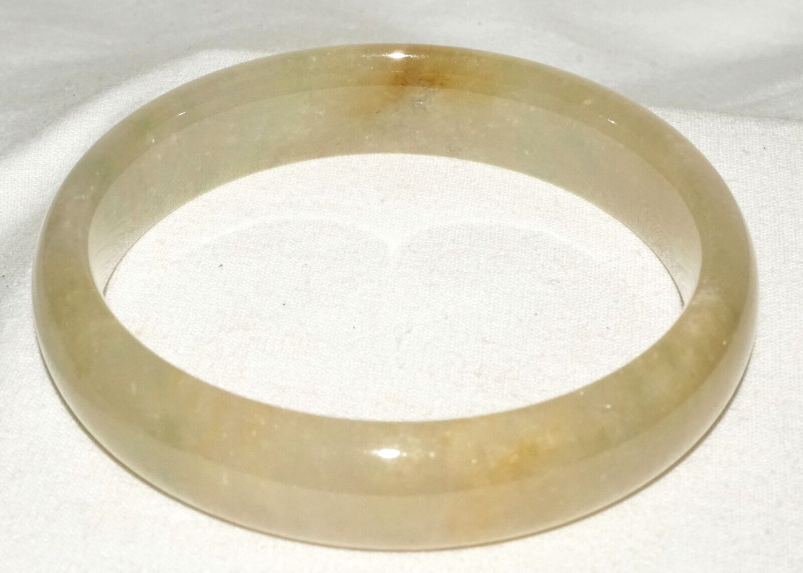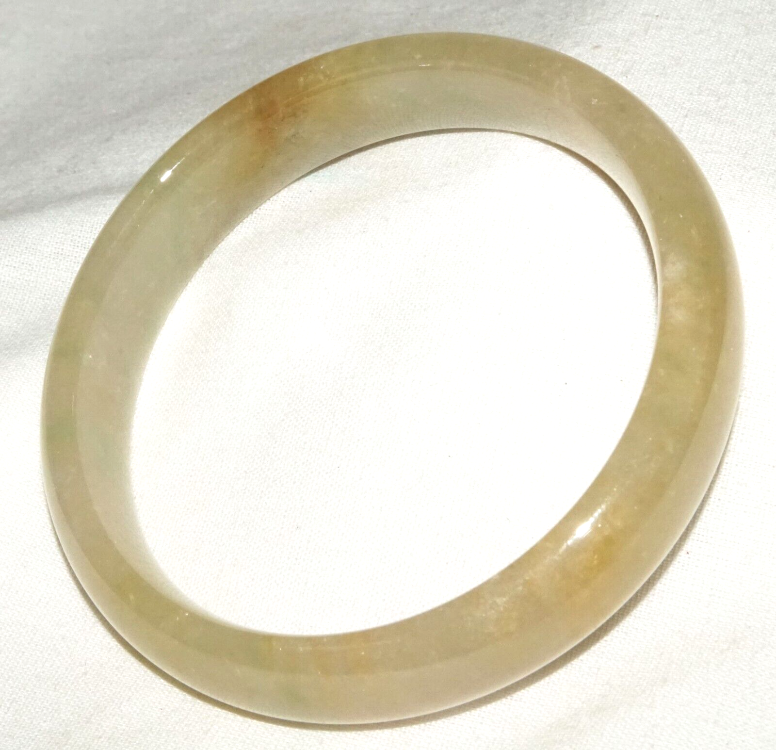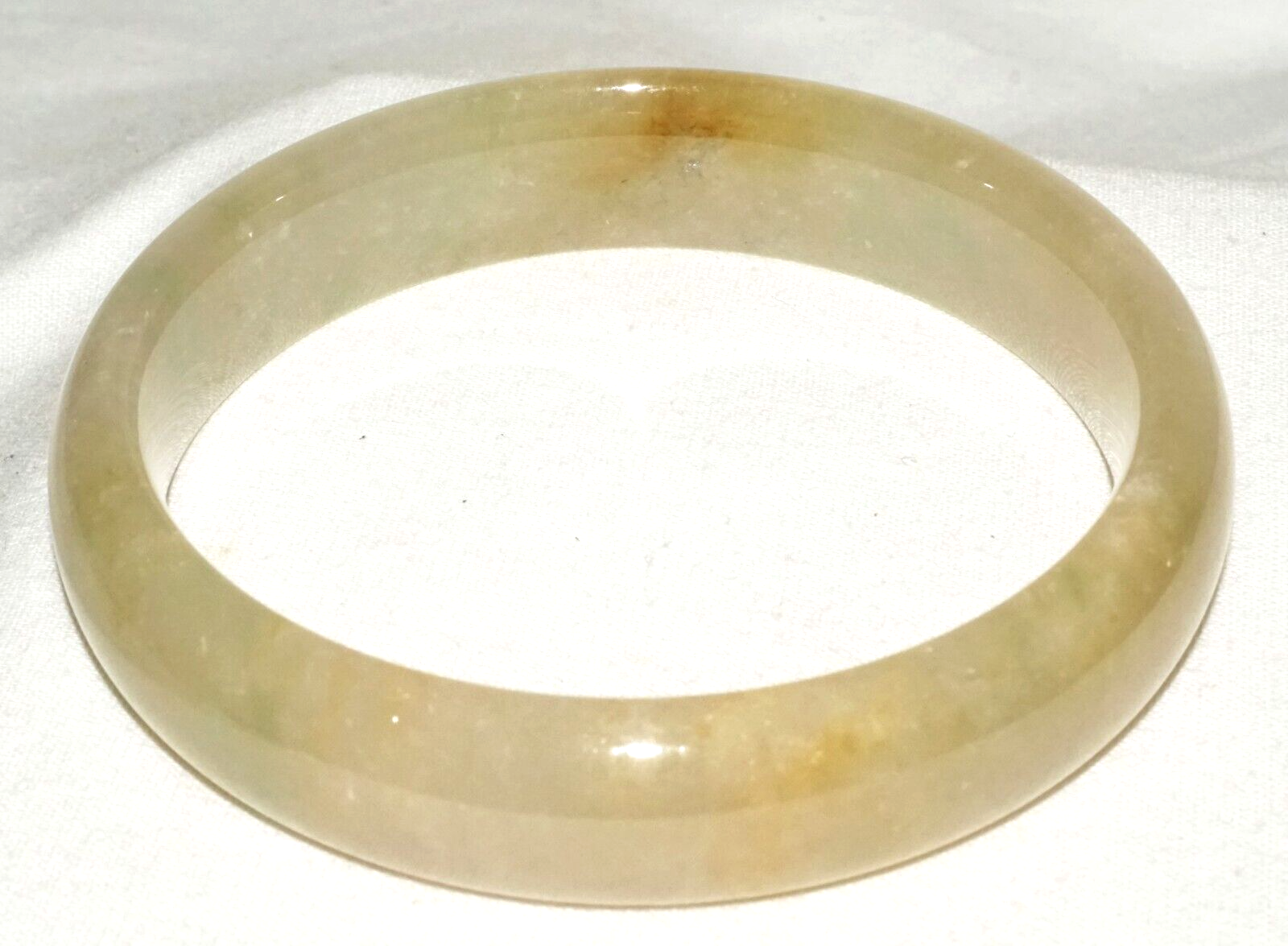 Vintage Chinese Semi Translucent Yellowish Green Jade Bangle Bracelet (InS)#L3