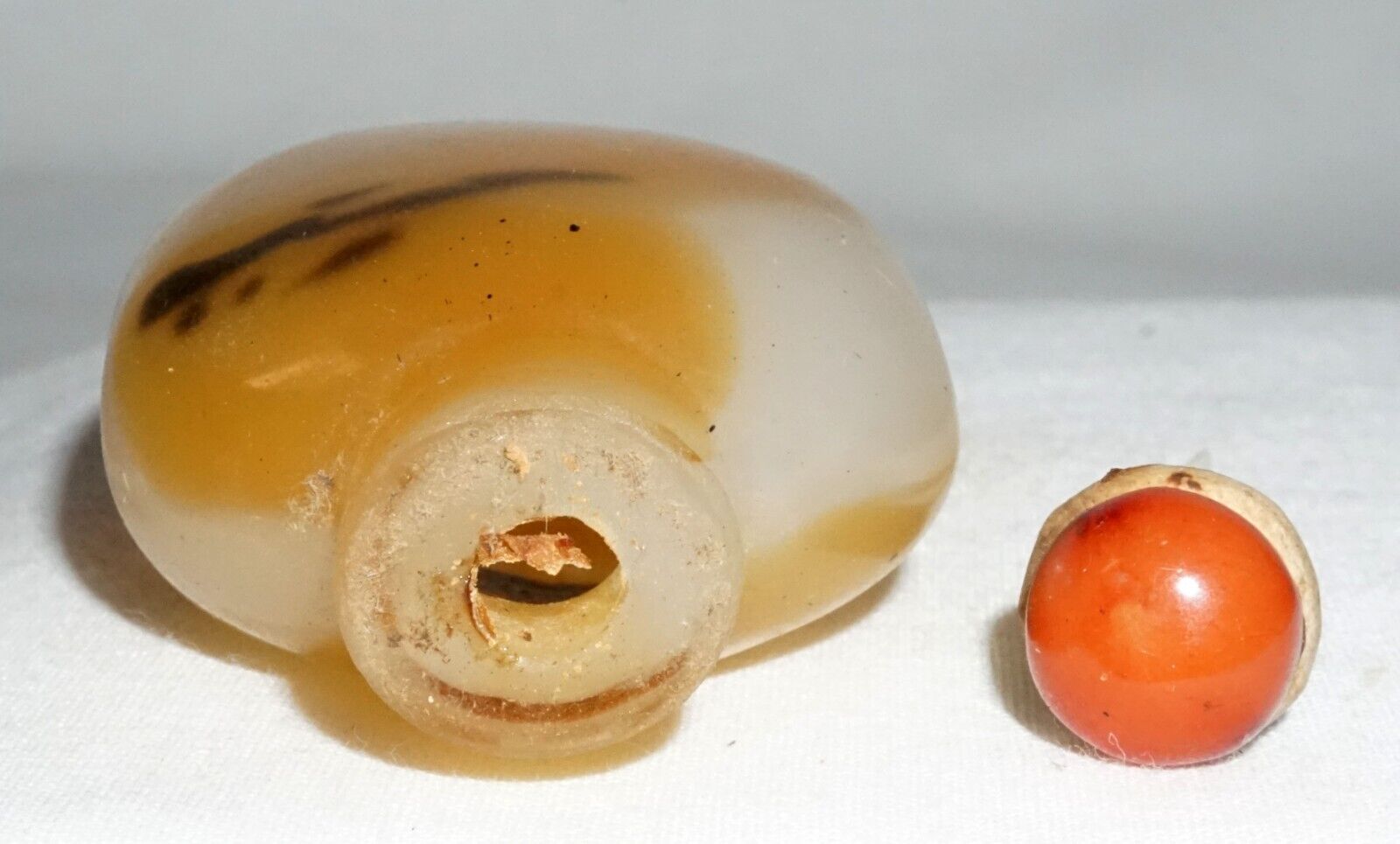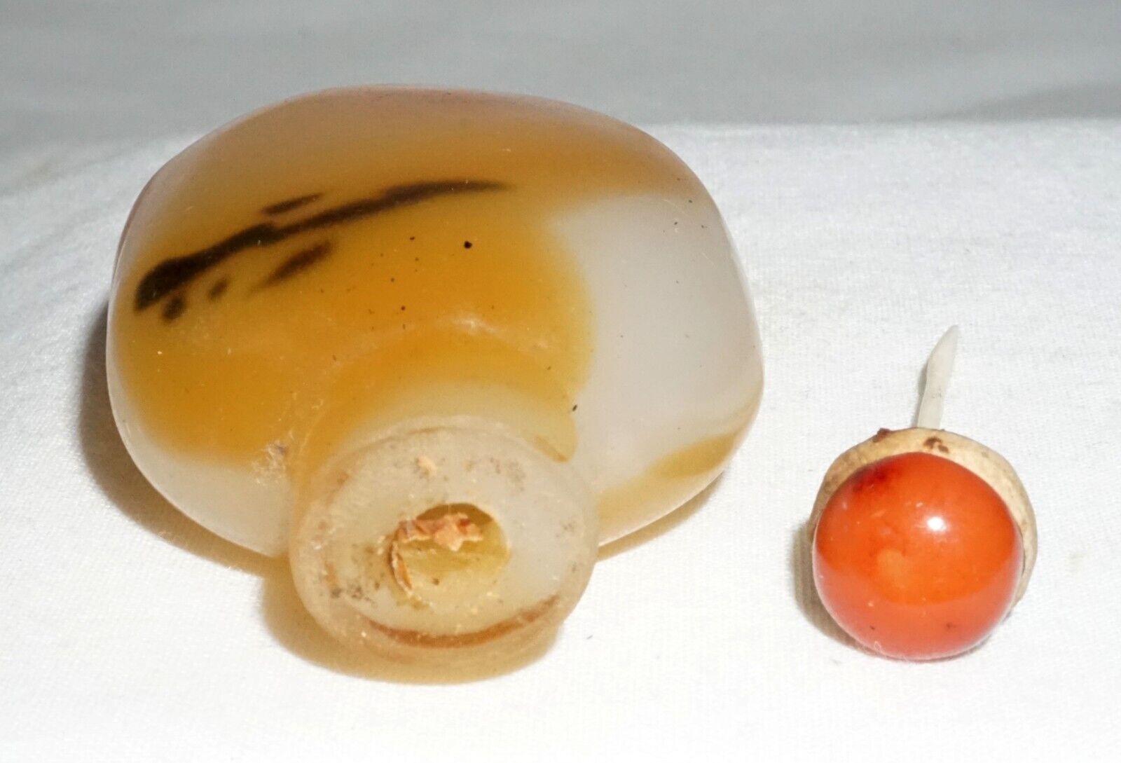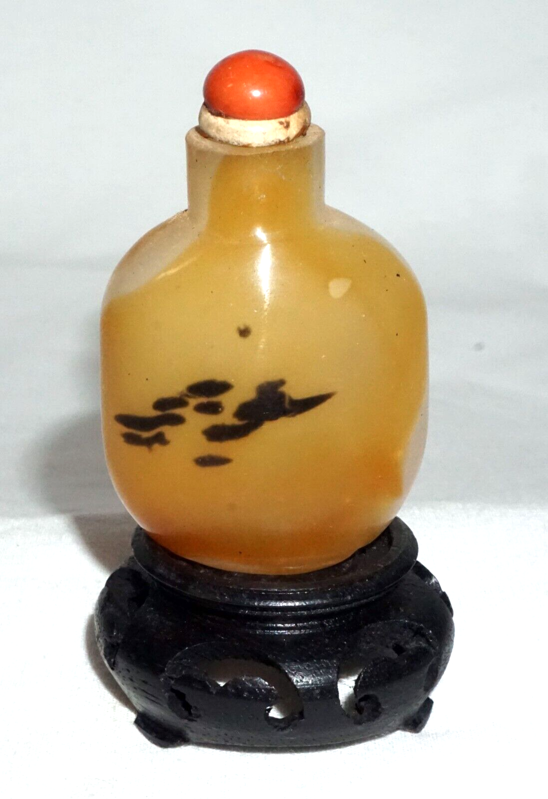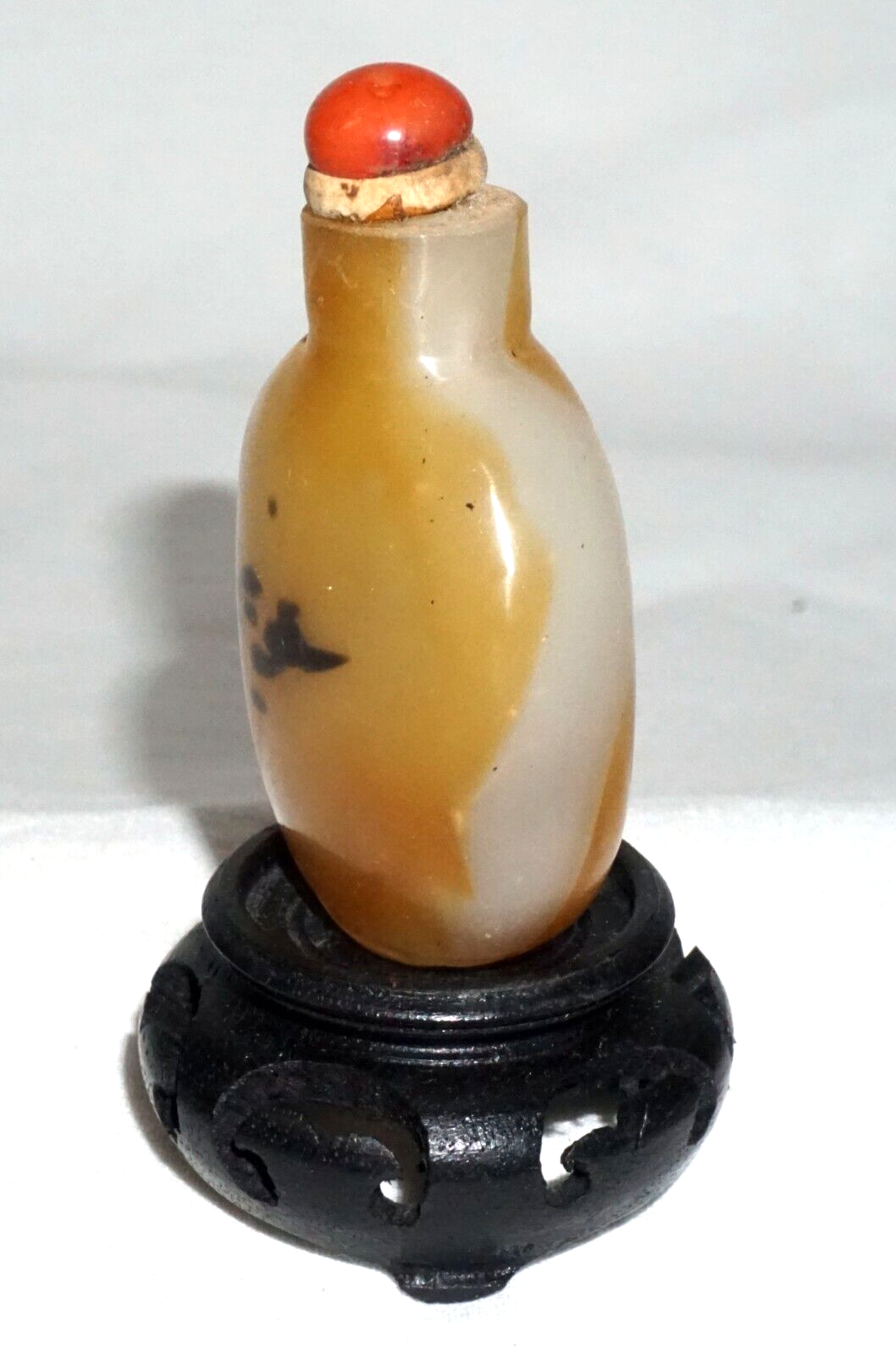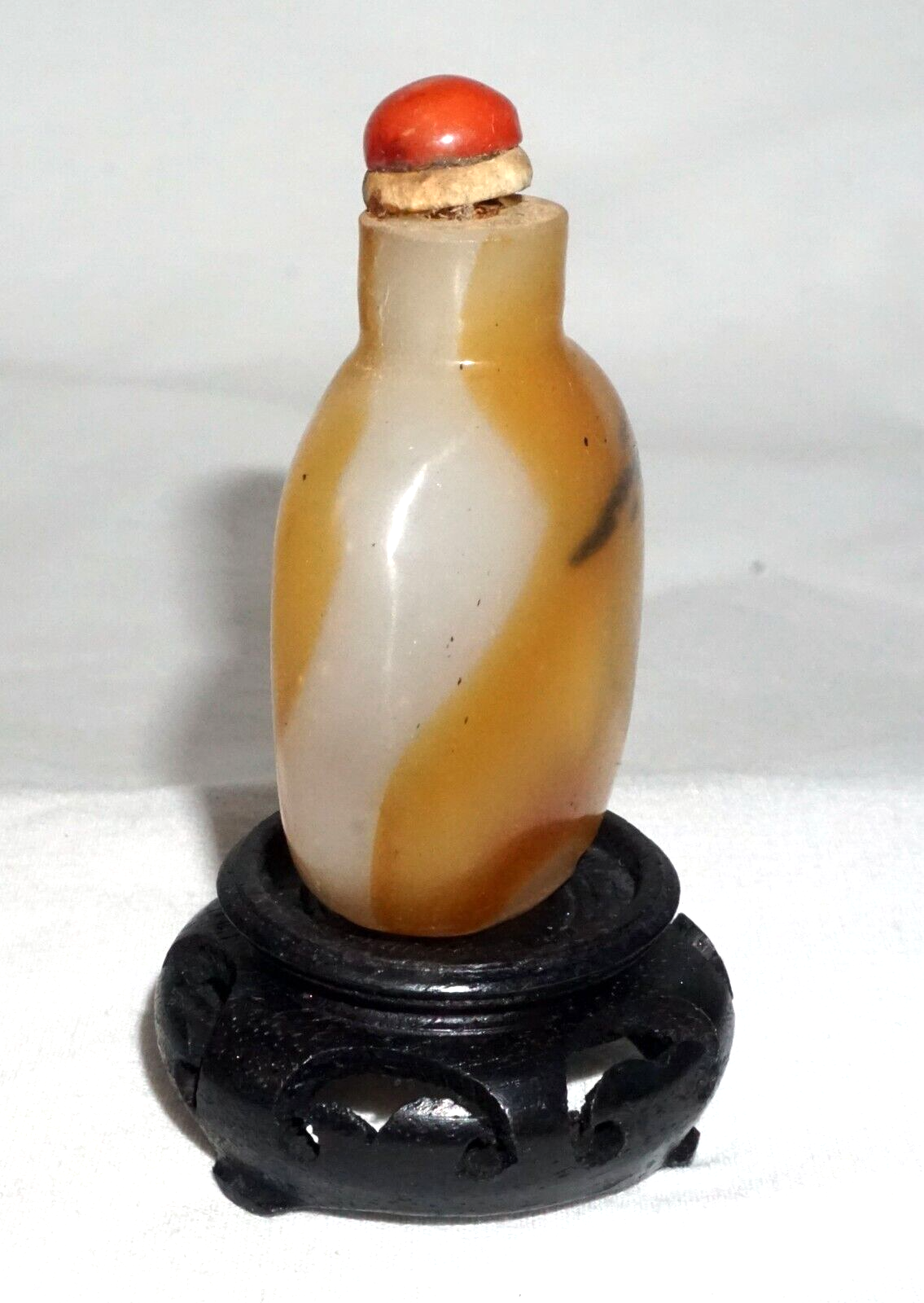 Up for sale from a recent client in Honolulu Hawaii, this Vintage Chinese shadow agate style glass snuff bottle under a coral stopper top. The bottle comes with a hardwood stand. The condition is described above for more information please check the photos. Free local pick up possible!!!