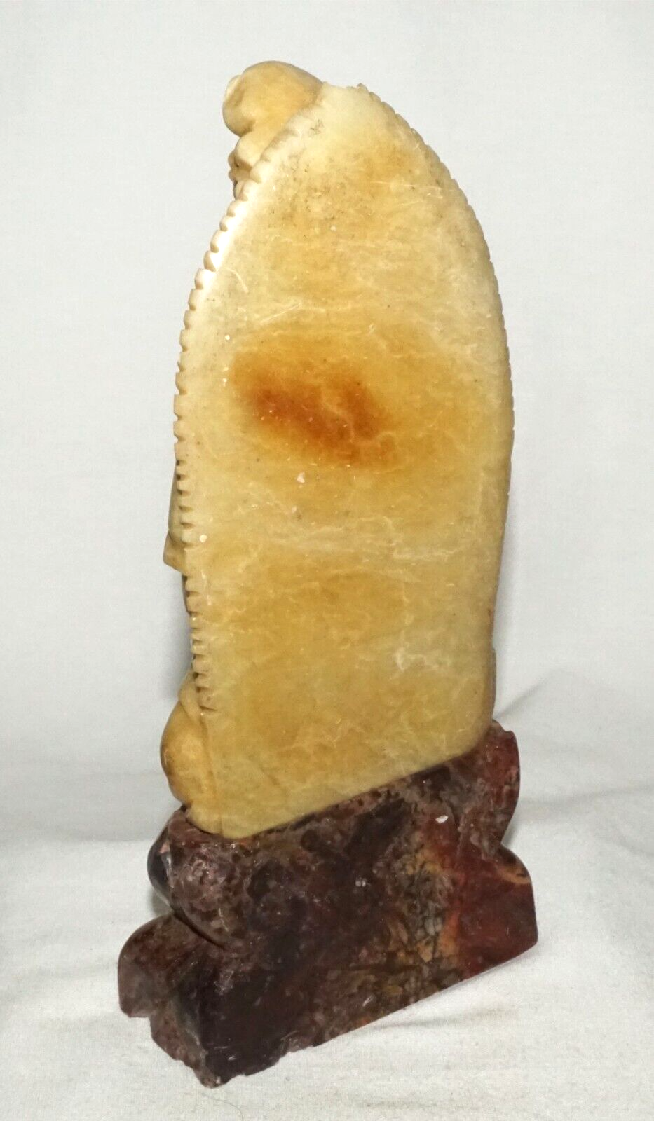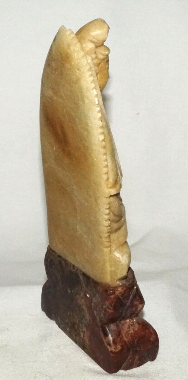 Vintage Chinese Soapstone Carved Buddha on a Lotus Base Sculpture (AHB)