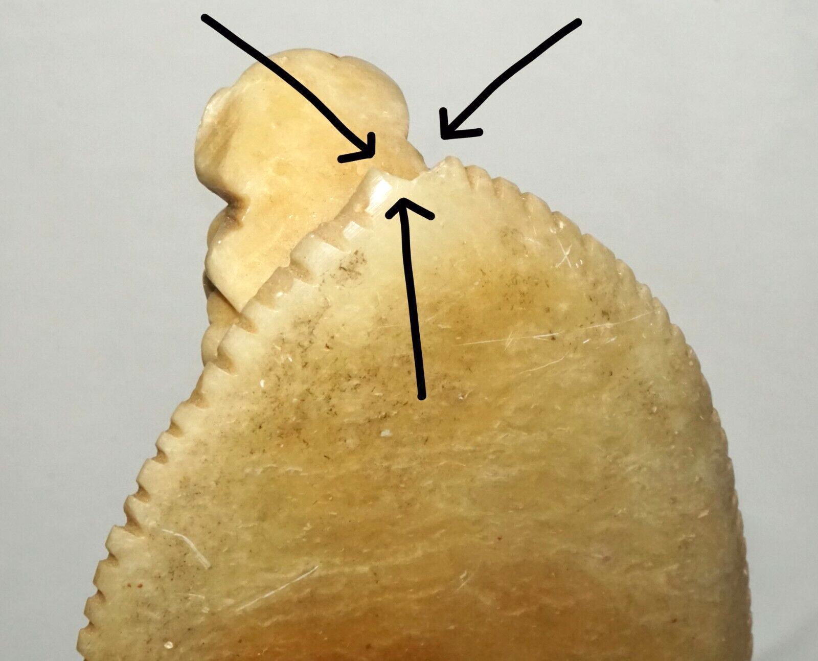 The item is overall in good pre-owned condition, the top of the halo is chipped (see photos with arrows),