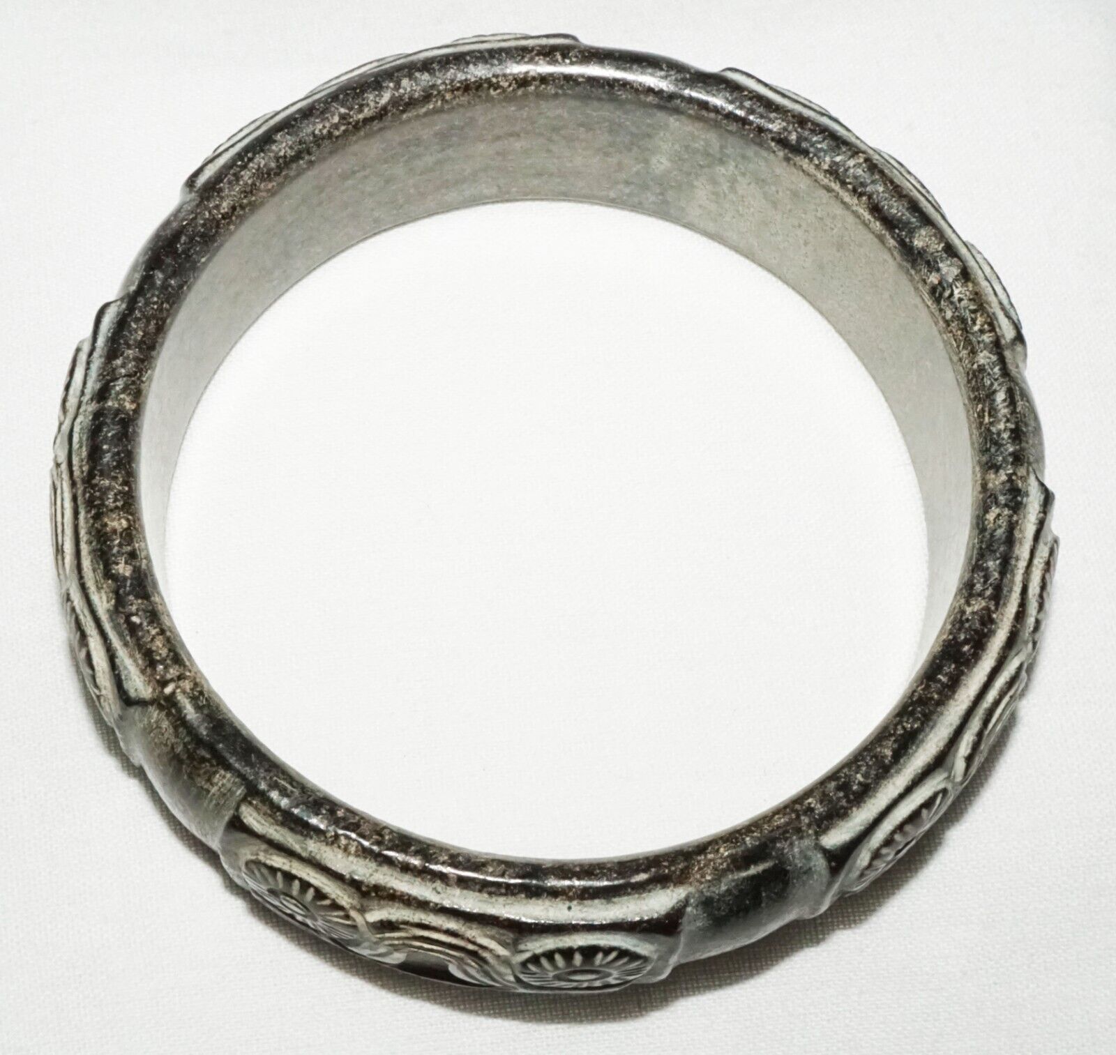 Vintage Chinese Steatite Archaistic Relief Carved Bangle Bracelet (LeS) B51