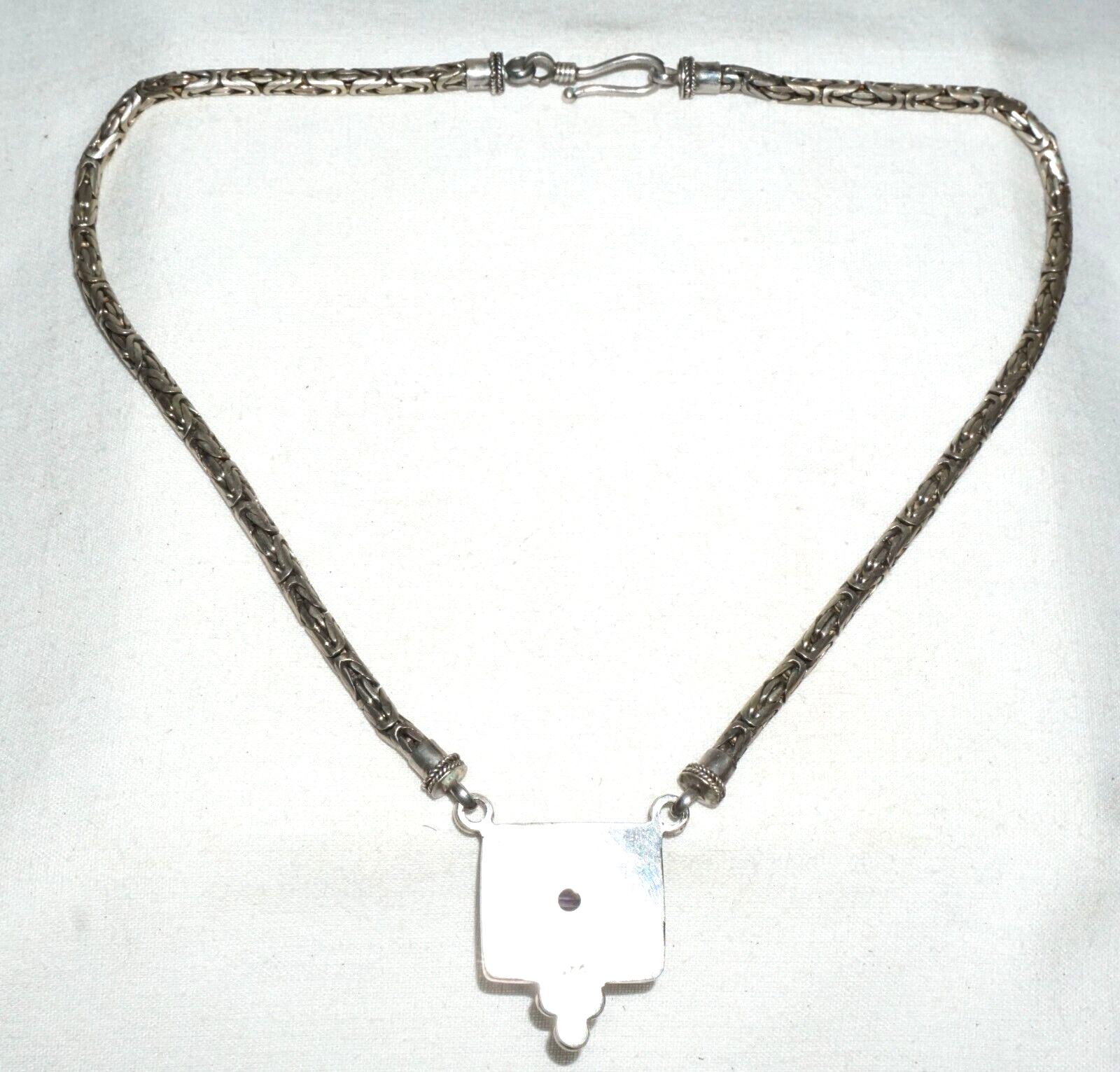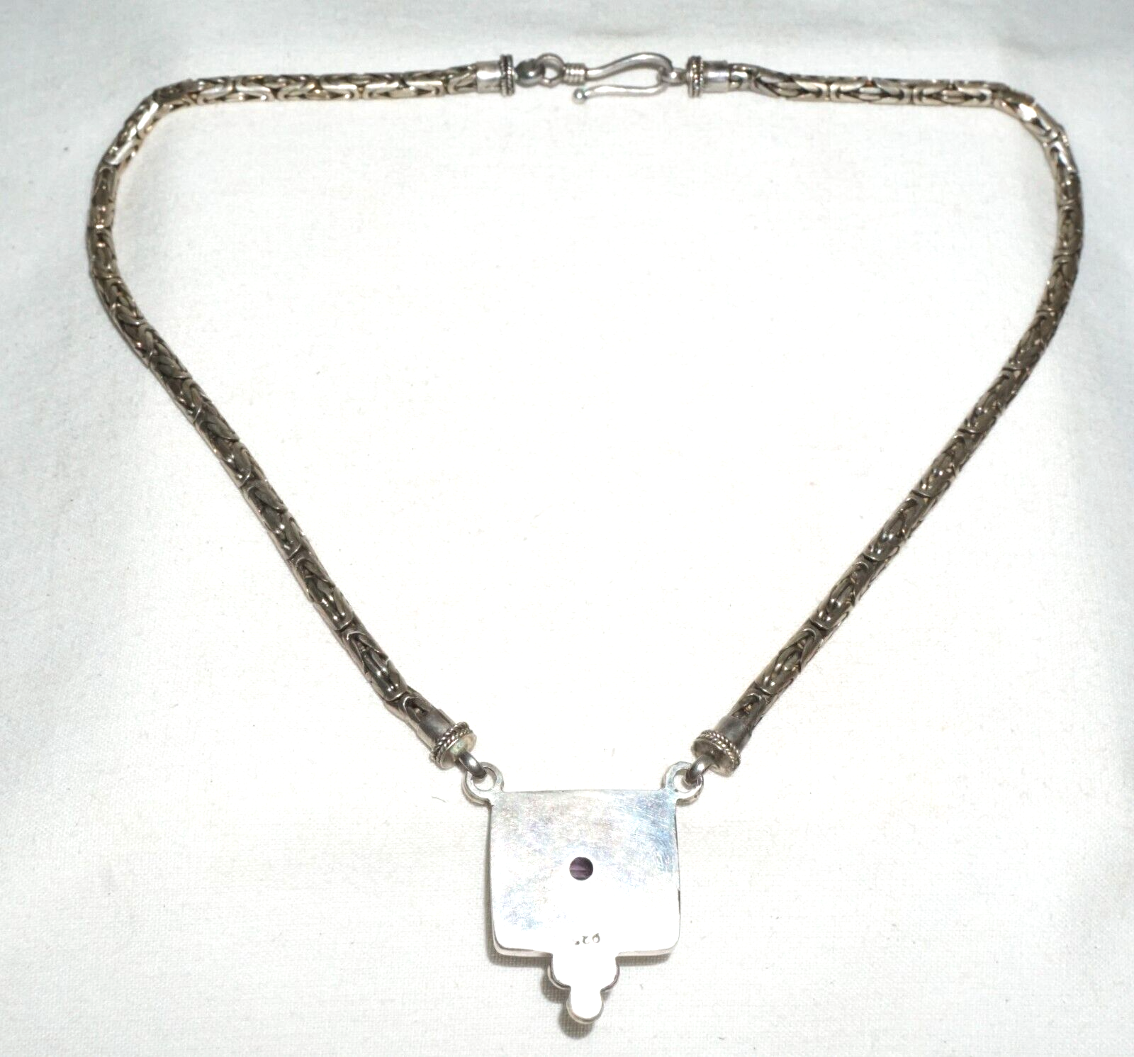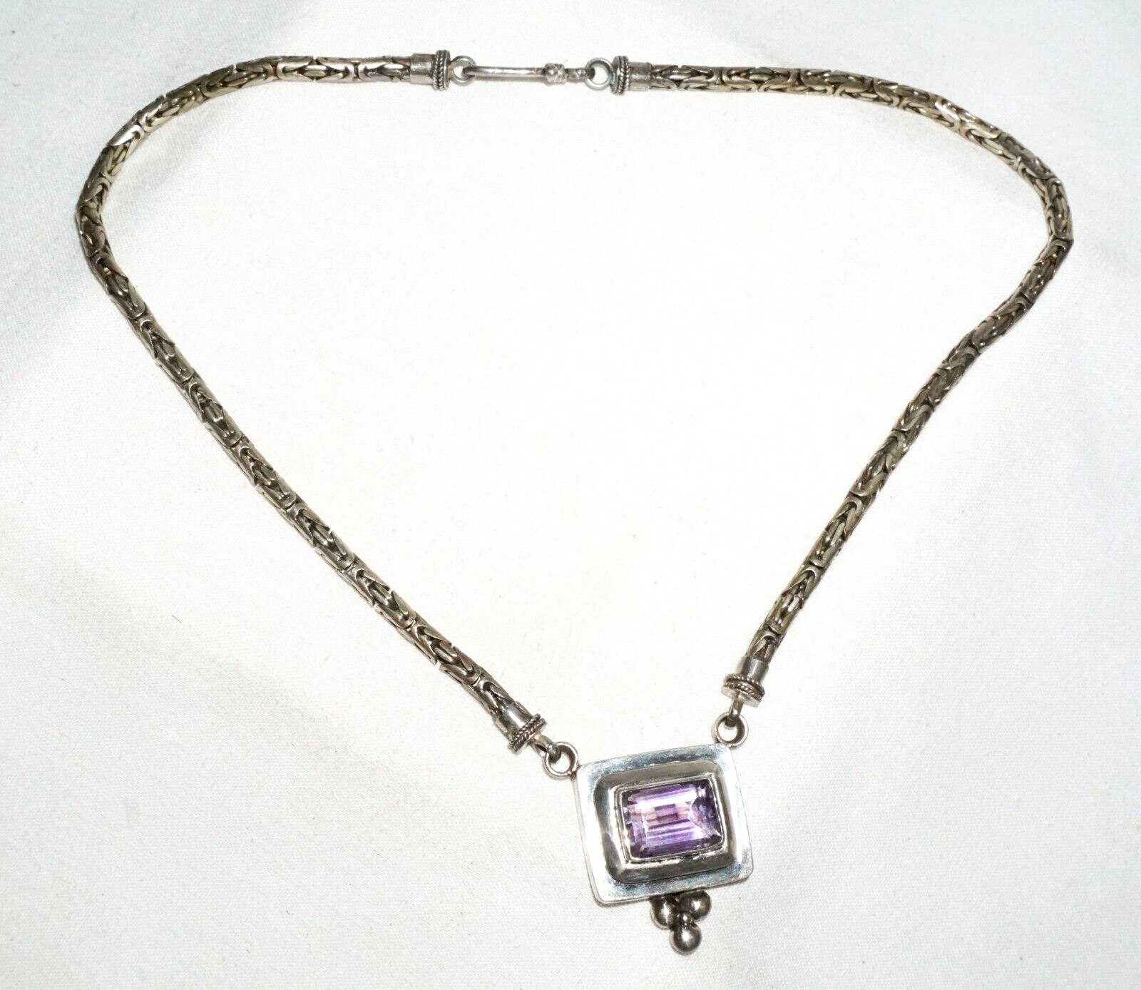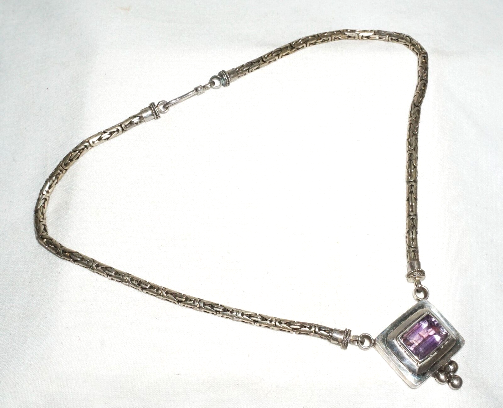 Vintage Modernist Sterling Silver Necklace w. Sterling Pendant w. Amethyst (---)